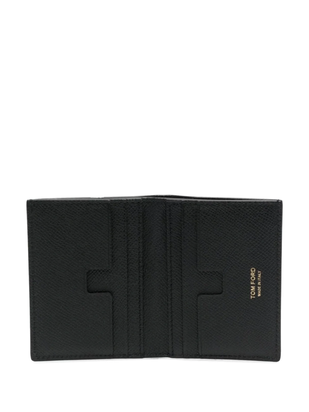 Jet Black, Kalbsleder, gefaltetes Design, goldfarbenes Logo, Geldscheinfach, Kartenfächer innen.