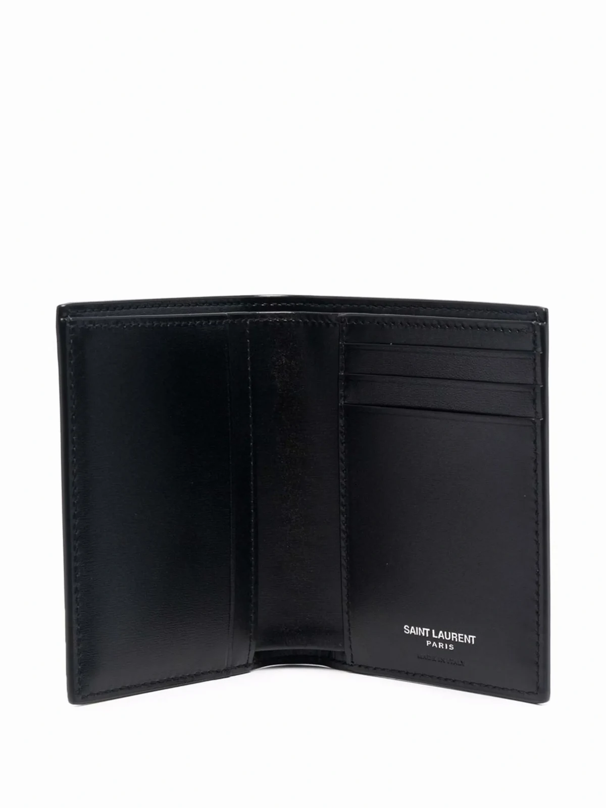 Silberfarbenes Logo, faltbar, Geldscheinfach innen, Kartenfächer innen, Futter aus Leder.