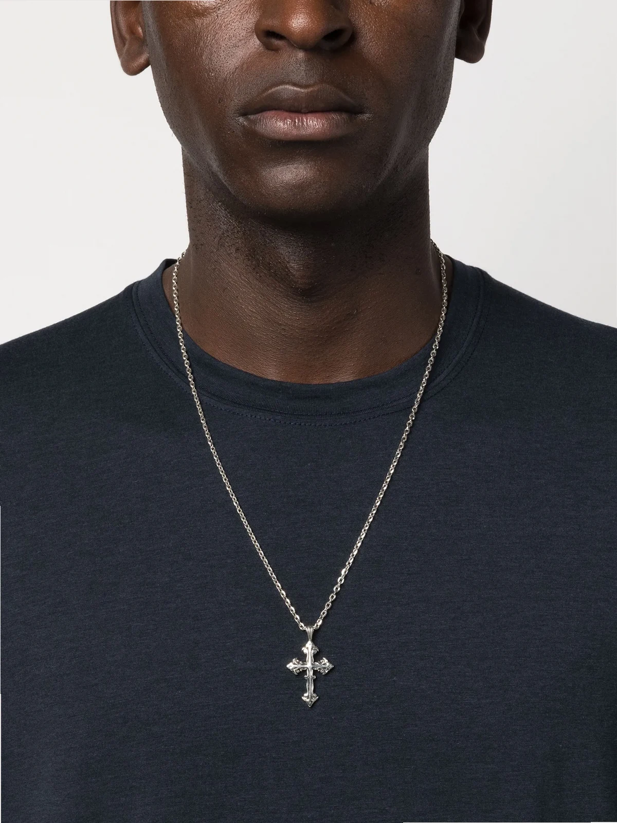 Silberfarben, Sterlingsilber, Kreuzanhänger, Ankerkette, Karabinerverschluss.