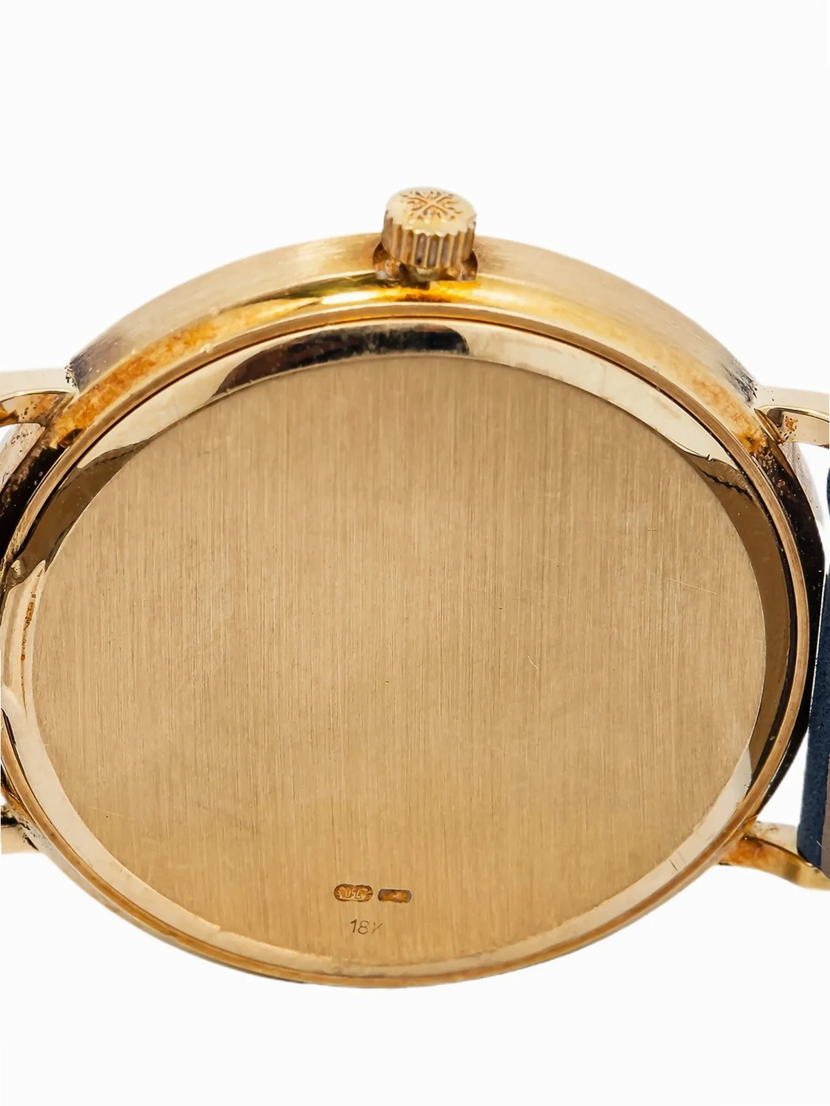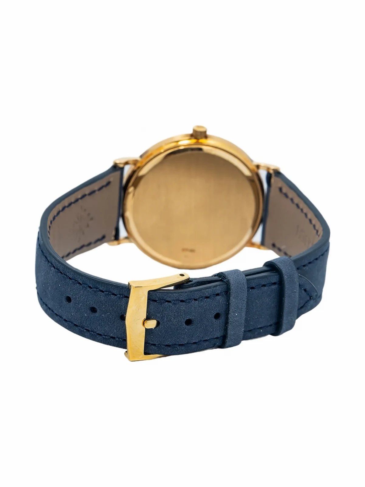Leder 100%, 18kt Gelbgold 100%, Saphirkristallglas 100%