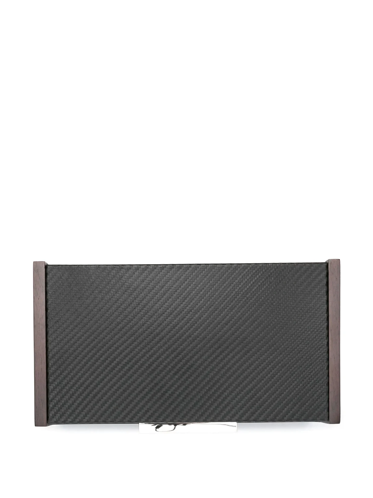 Diagonales Streifenmuster, silberfarbene Beschläge, Klappdeckel.
