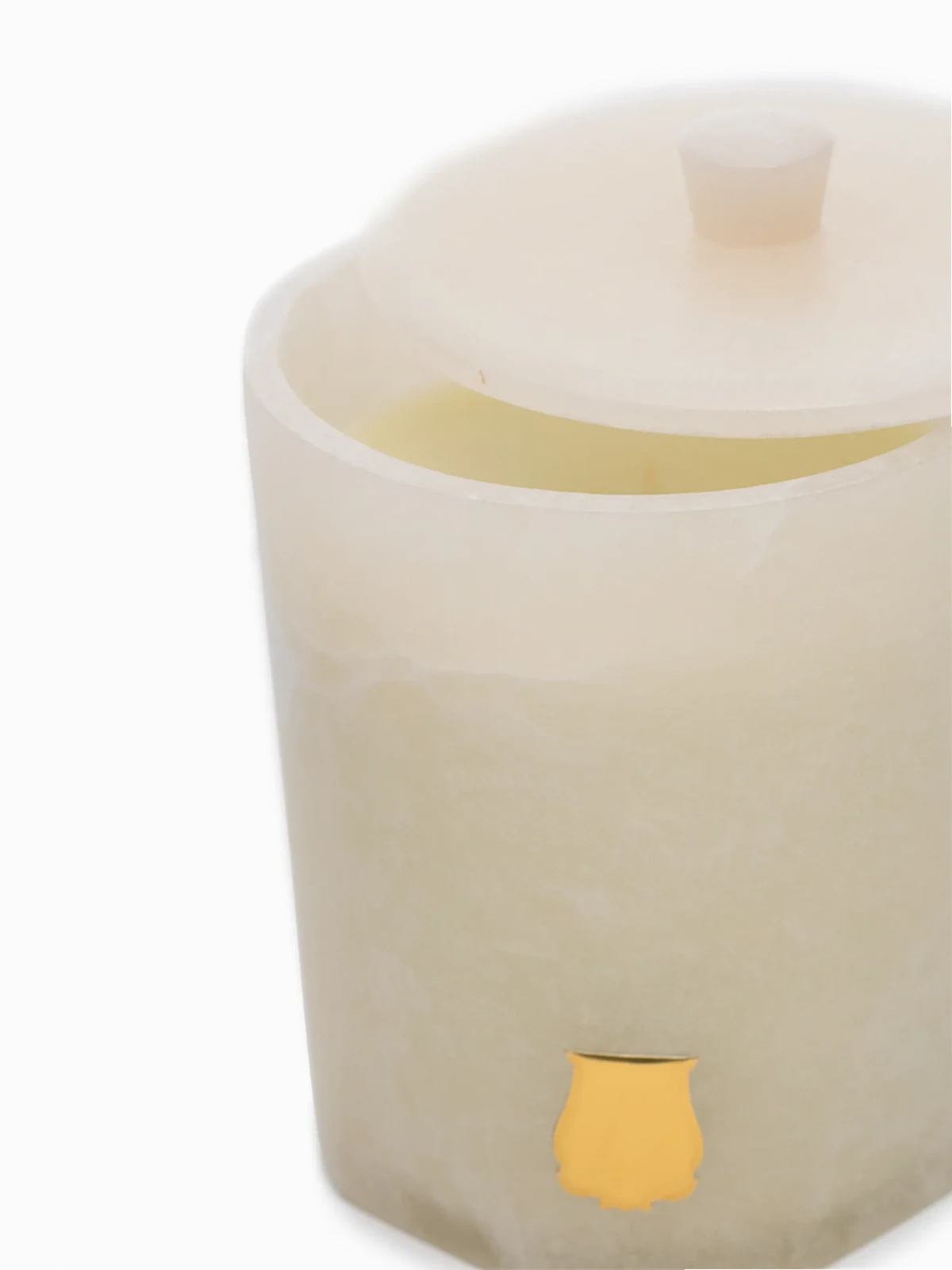 60 Stunden Brenndauer, goldfarbenes Logo-Schild, einzelner Baumwolldocht. Material: Wachs.