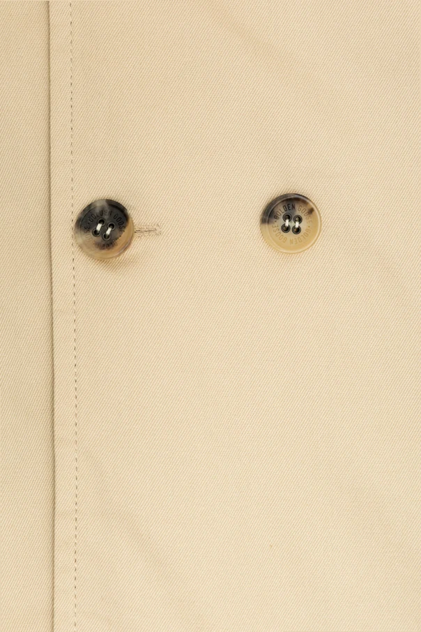 Zweireihige Knöpfe in einem edlen Braunton, inspiriert vom "Tortoise Shell"-Effekt, setzen einen eleganten Akzent in diesem Ensemble. Das dezent angebrachte Emblem der Marke Golden Goose sowie die erlesene Materialkombination aus Baumwolle, Viskose und strapazierfähigen Fasern stehen für höchste Qualität und Komfort im Alltag. Dieser Trenchcoat ist nicht nur ein Symbol für guten Geschmack, sondern auch für unvergleichliche Funktionalität.