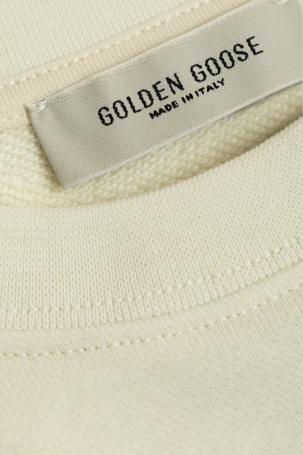 Cremfarbenes Sweatshirt mit Logo der Marke Golden Goose Kids ist die Quintessenz raffinierter Schlichtheit für Mädchen im Alter von 4–14 Jahren. In einem einheitlichen, hellen Farbton gehalten, begeistert es durch subtile Eleganz und Liebe zum Detail – der klassische Schnitt mit langen Ärmeln und rundem Ausschnitt schafft eine harmonische Komposition voller jugendlichem Charme.