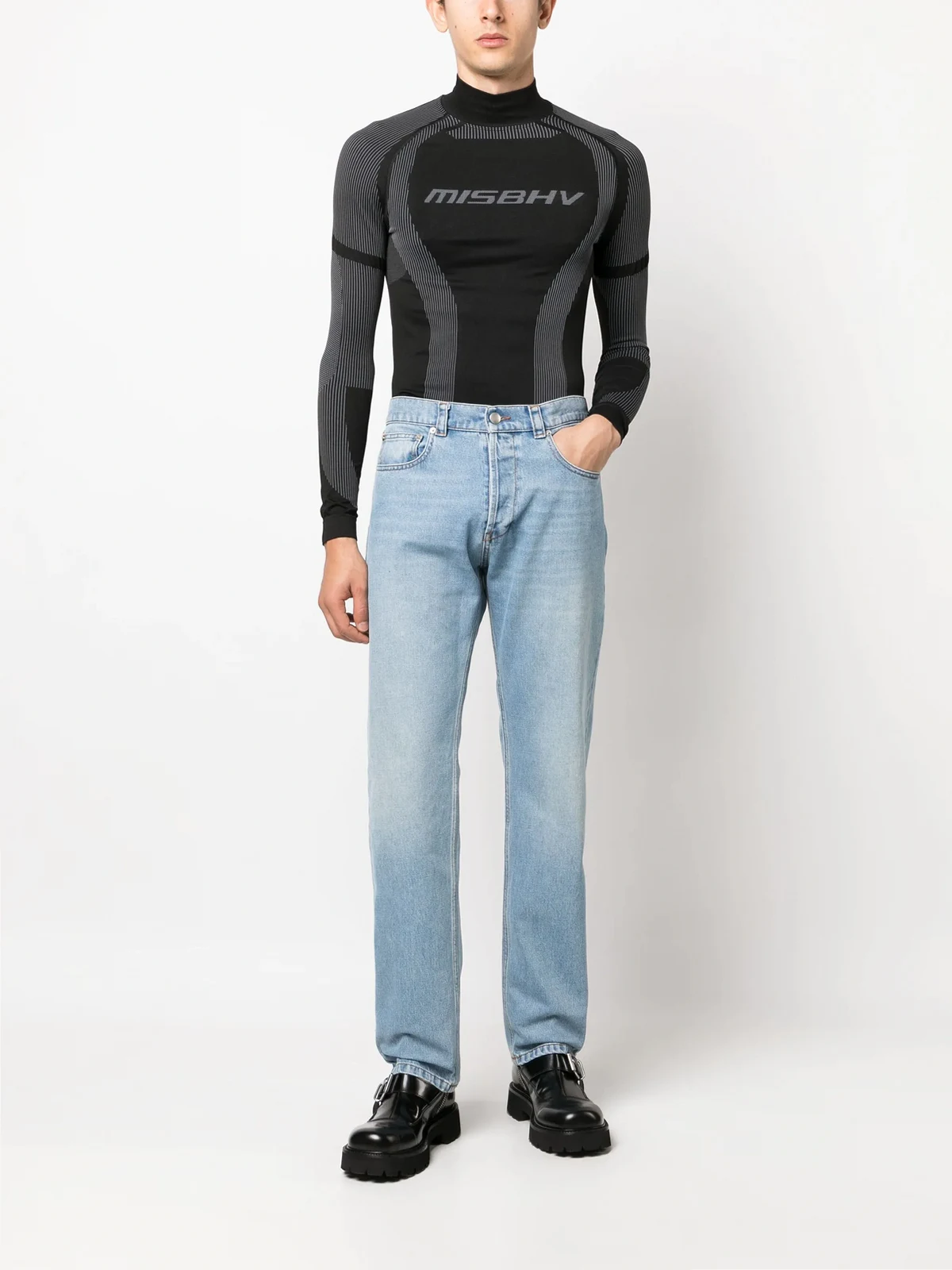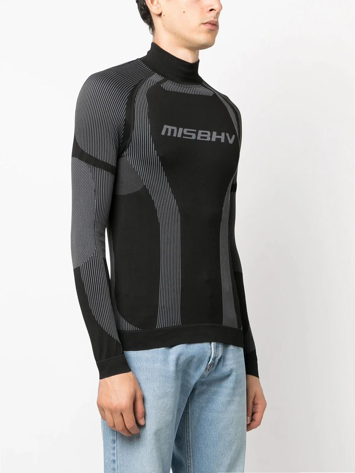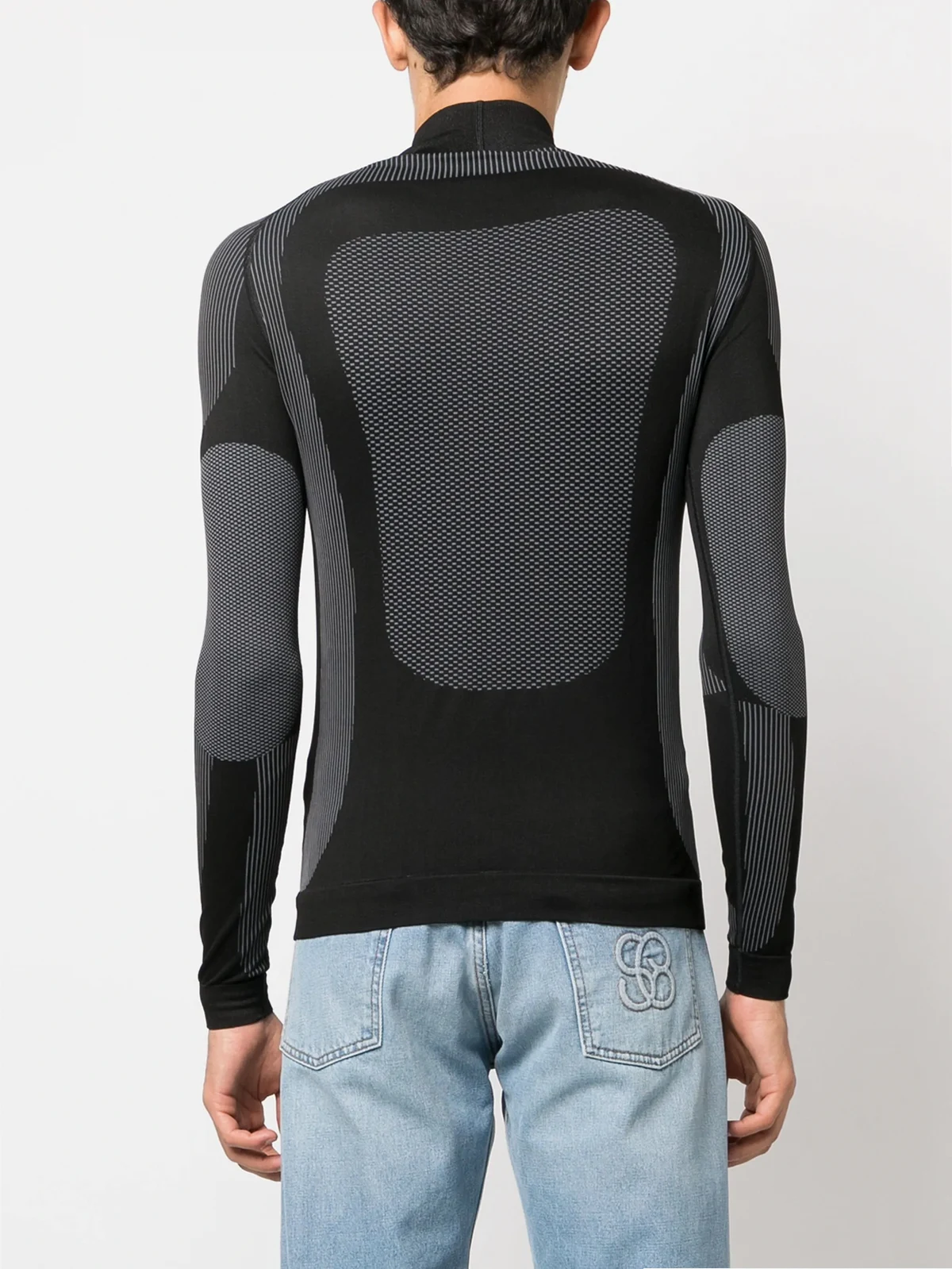 Schwarz/Grau, recyceltes Polyamid-Gemisch, Stretch-Design, Kontrastdetails, Logo-Print an der Brust, kurzer Stehkragen, lange Ärmel, gerader Saum. .