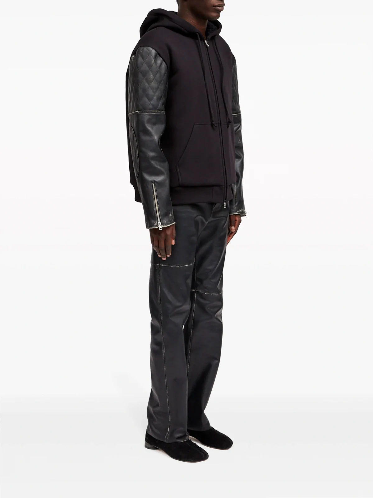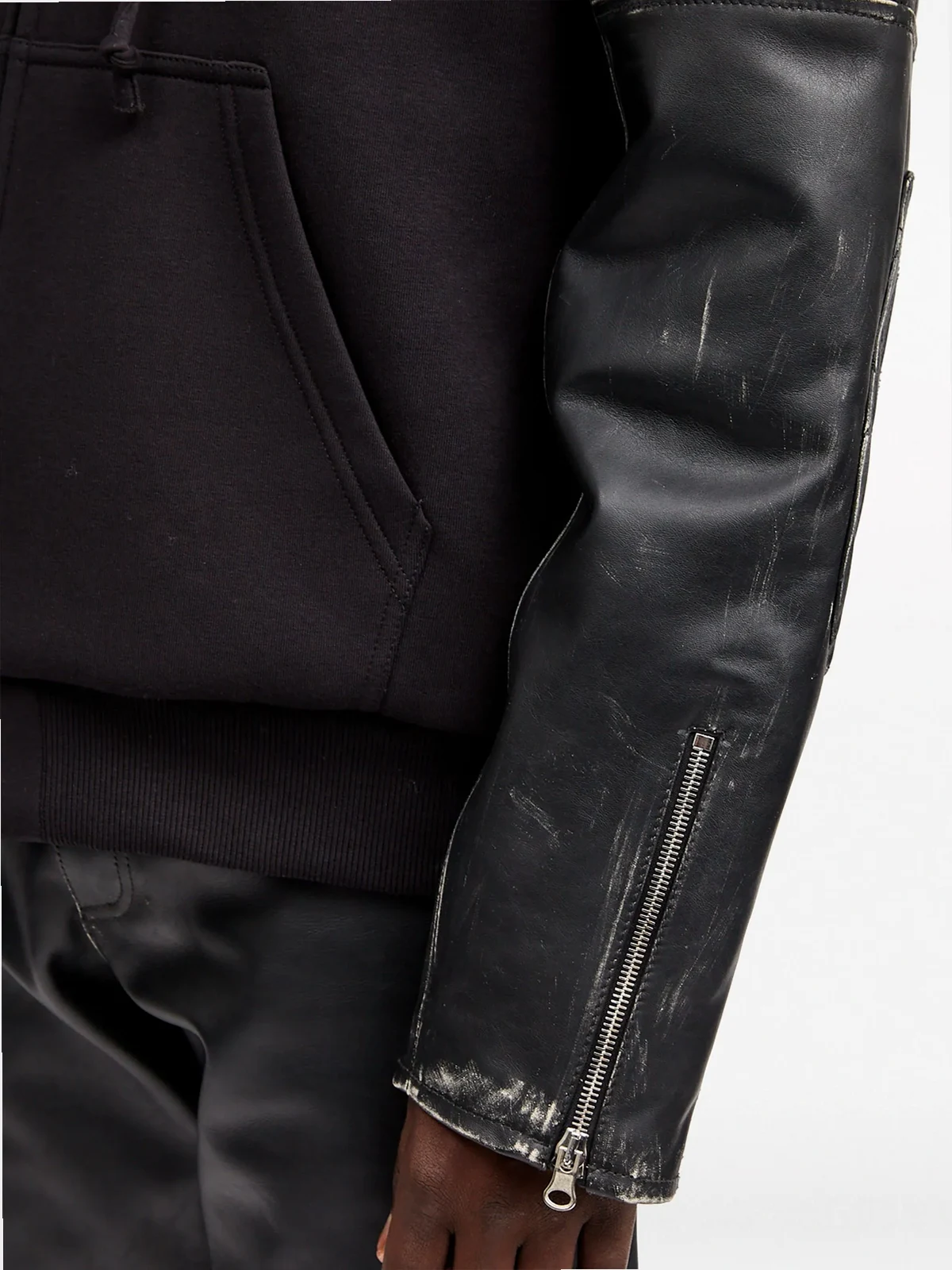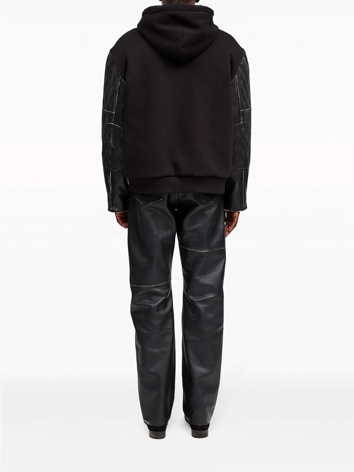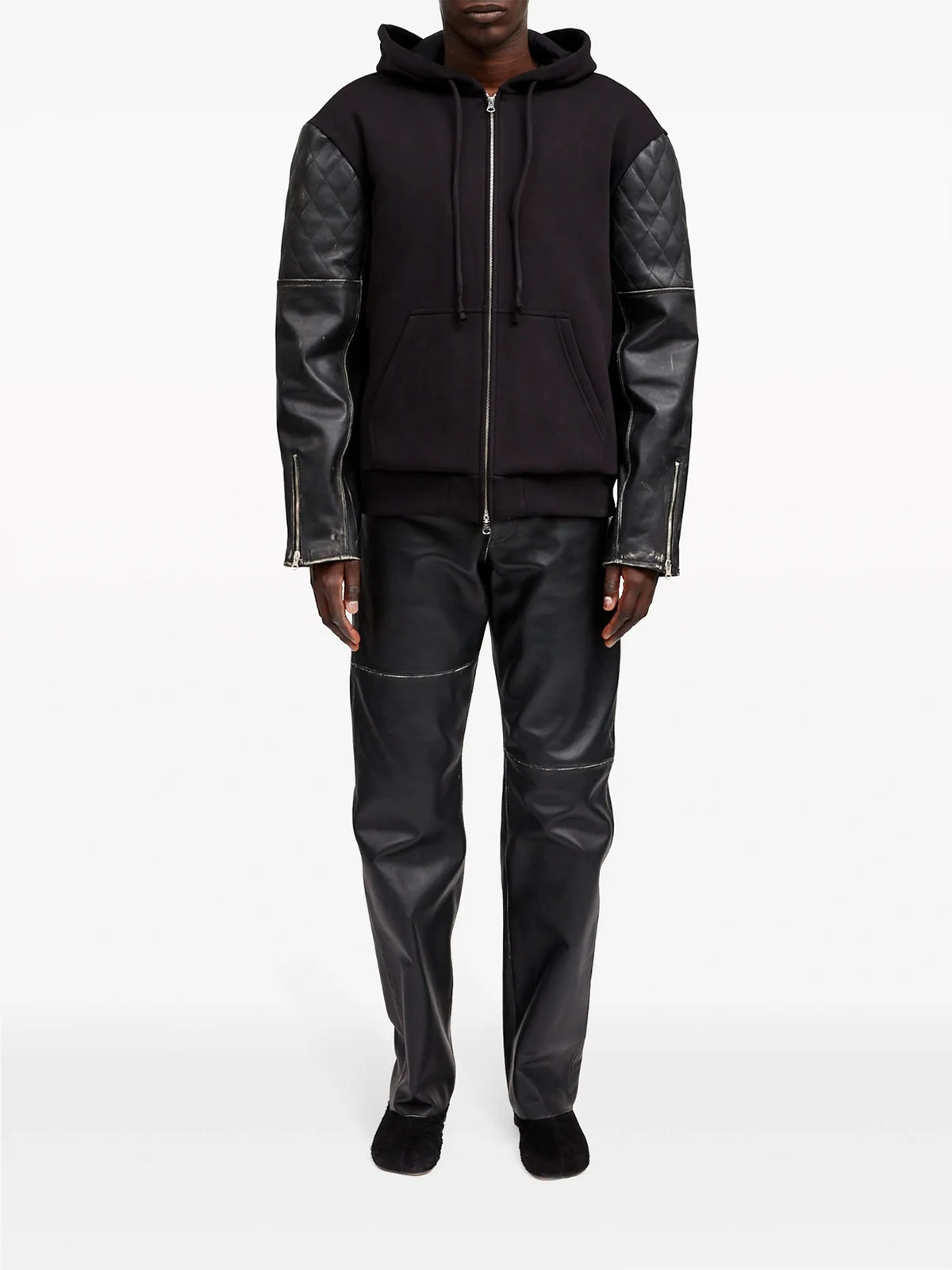 Schwarz, Baumwollgemisch, Reißverschluss vorne, Kontrastdetails, Ziernähte, zwei Beuteltaschen vorne, Kapuze mit Kordelzug, lange Ärmel, gerader Saum.