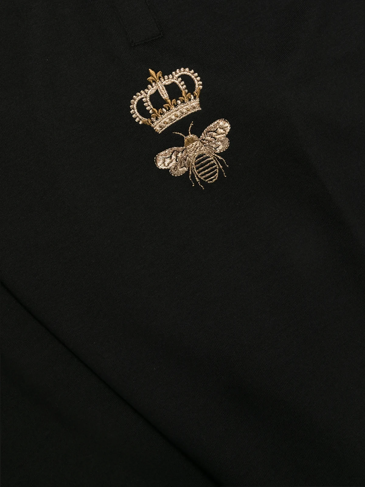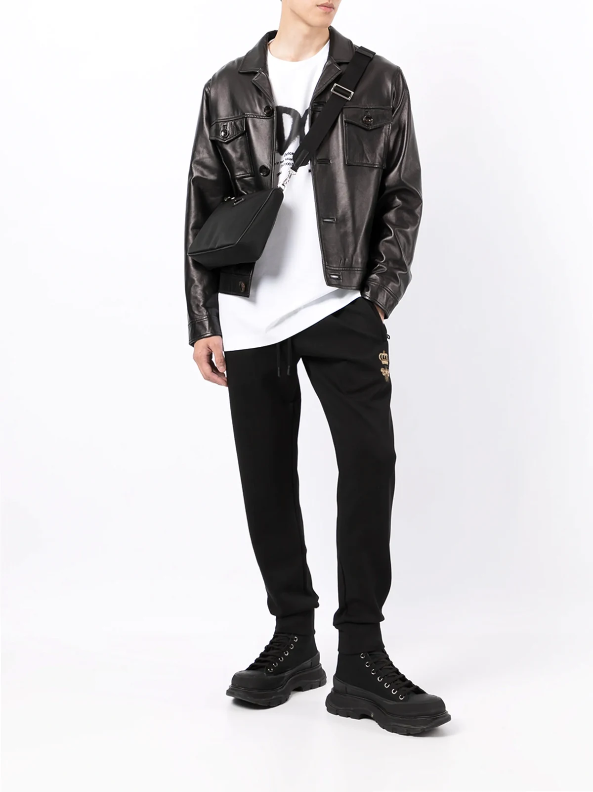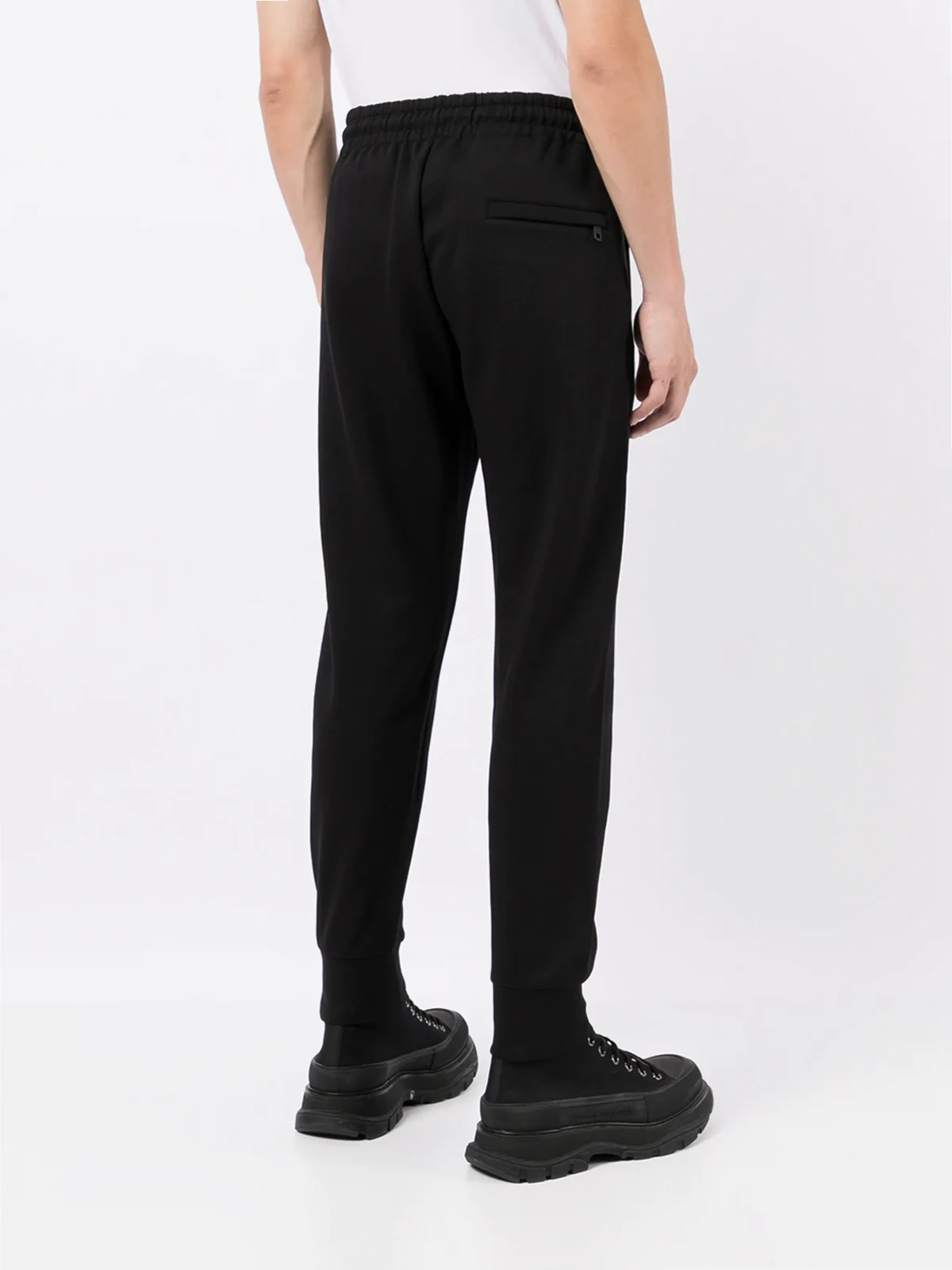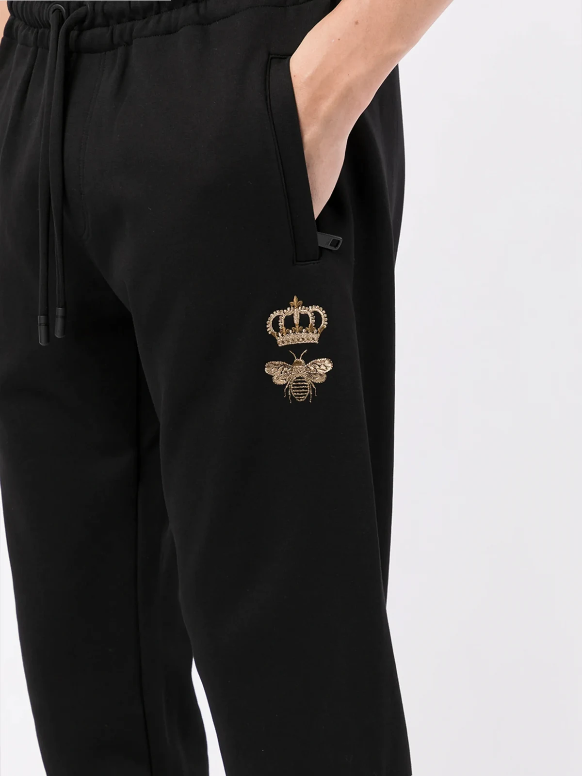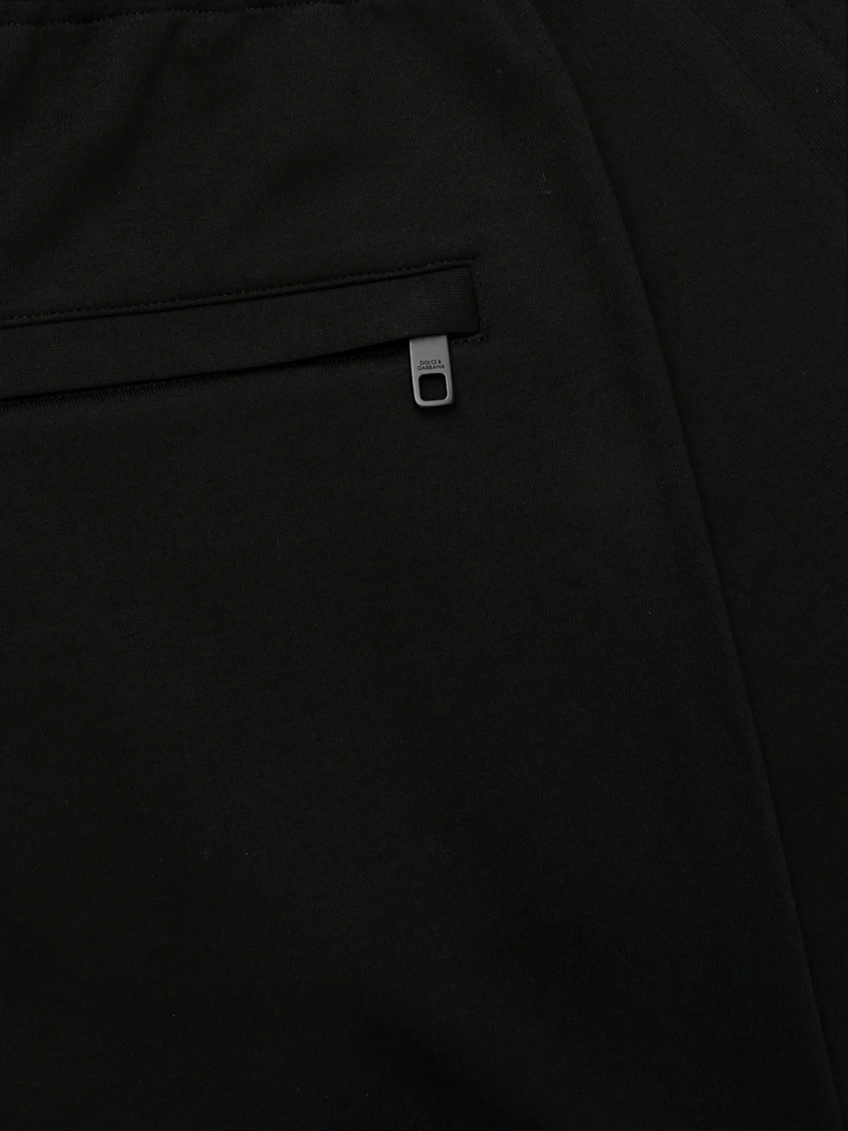 Wappen, Bund mit elastischem Kordelzug, zwei Eingrifftaschen an der Seite, Gesäßtasche mit Reißverschluss , elastische Bündchen am Knöchel. Farbe: Schwarz.
