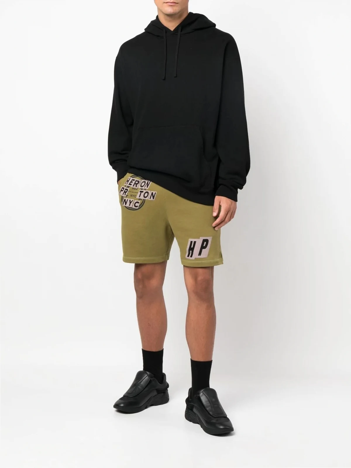 Militärgrün, Bio-Baumwolle, elastischer Bund, zwei Eingrifftaschen an der Seite, Logo-Patch hinten, Logo-Print vorne. .