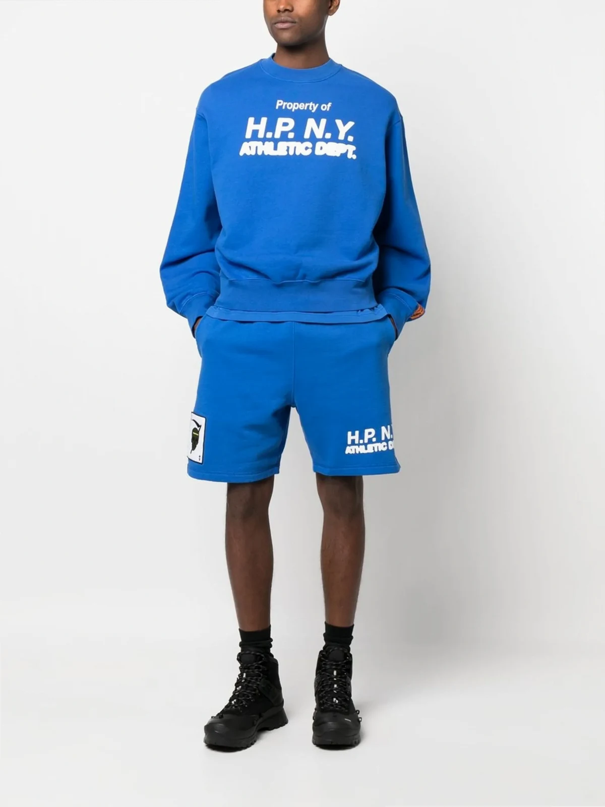 Kobaltblau, Weiß, Baumwolle, Logo-Print am Bein, Patch-Detail, Logo-Patch hinten, elastischer Bund, seitliche Eingrifftaschen.