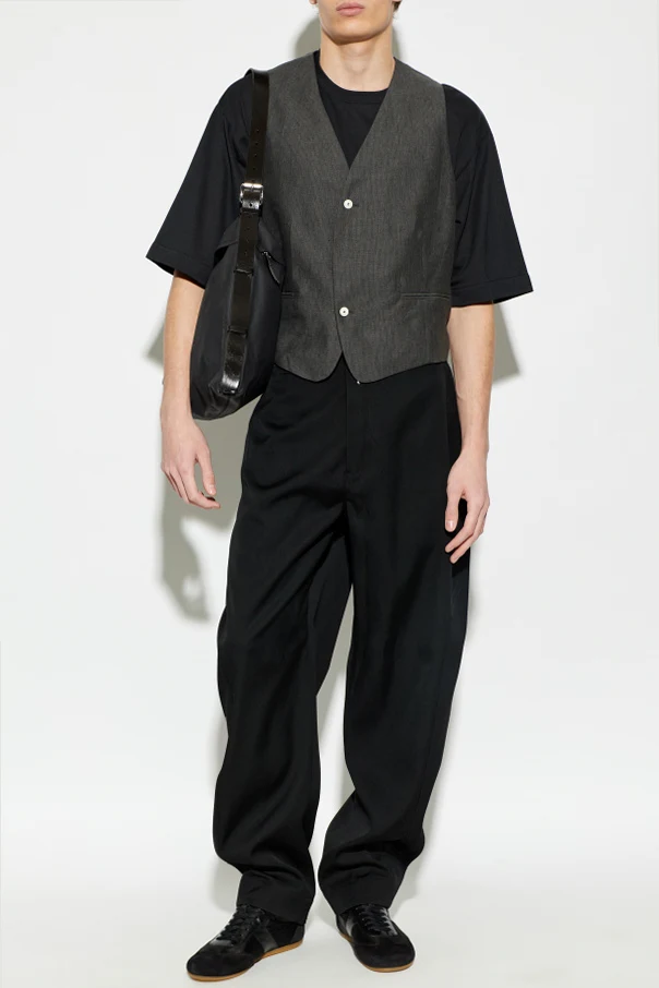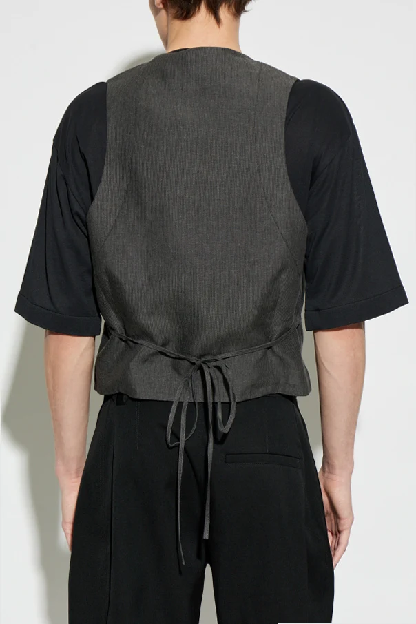 Die „Paysan“ Weste von Jacquemus ist eine exquisite Wahl für Kenner raffinierter Eleganz. Ihre klassische, schlichte Form in leicht kastiger Silhouette wurde kunstvoll perfektioniert durch eine dezente Taillierung sowie einen asymmetrisch abgerundeten Saum, was dem Gesamtbild einen einzigartigen Charakter verleiht. Eine verstellbare Kordel am Rücken ermöglicht eine individuelle Betonung der Taille und sorgt für maximalen Sitz und perfekten Komfort.