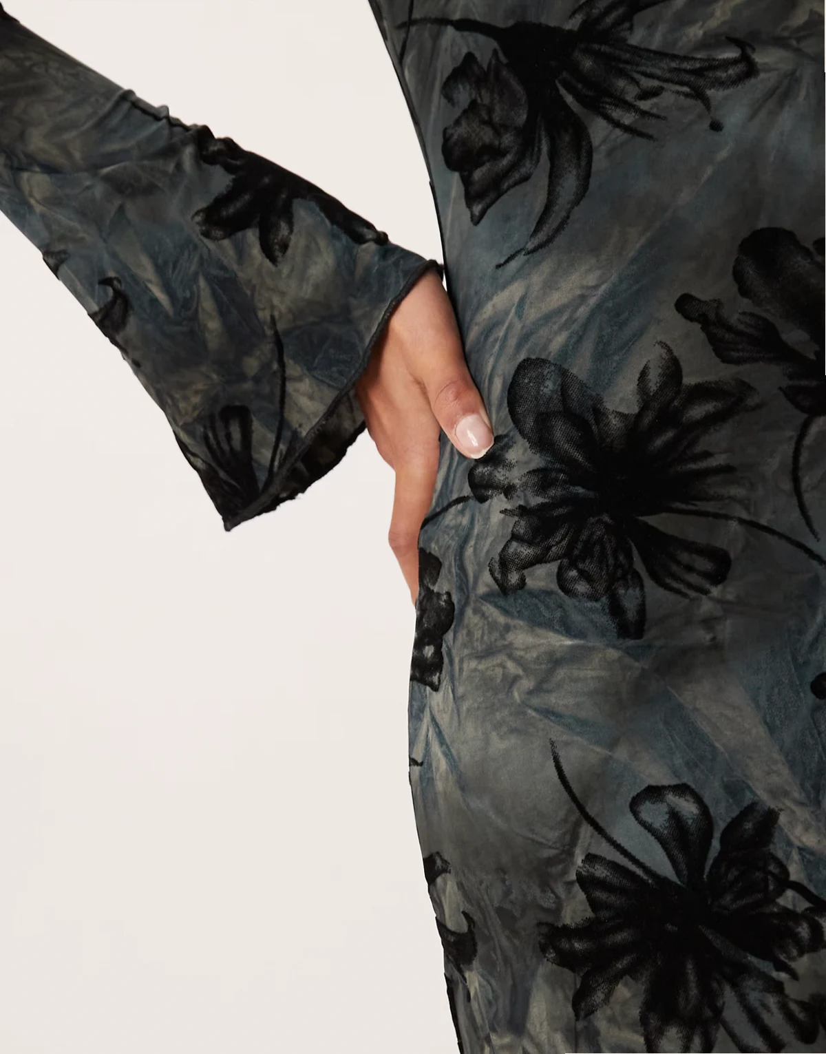 – Sevila – Langärmliges Minikleid aus Ausbrennersamt in Grau