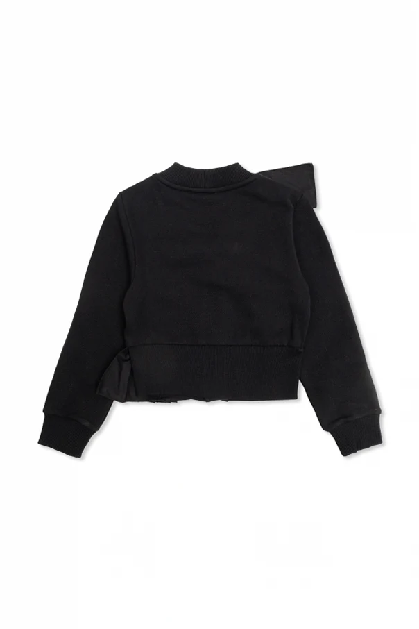 Eine kurze Strickjacke von außergewöhnlicher Eleganz im zeitlosen Schwarz besticht durch ihren raffinierten Schnitt und kunstvolle Details. Besonders ins Auge fällt die asymmetrische, beeindruckende Rüsche , die die Silhouette harmonisch vom linken Schulterbereich über die Vorderseite bis zum unteren Rand umschmeichelt und dem Gesamtbild einen faszinierenden, mädchenhaften Ausdruck verleiht.