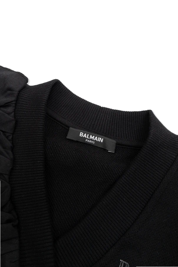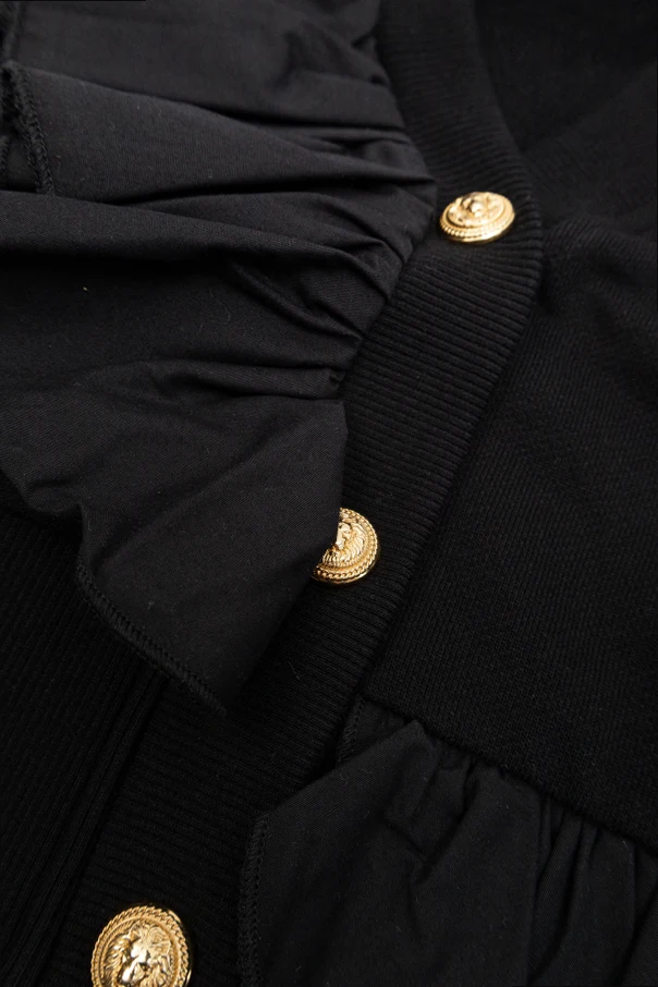 Dieses Modell zeichnet sich durch effektvolle goldene Knöpfe aus, die an Haute-Couture-Motive angelehnt sind und sowohl als dekoratives als auch funktionales Verschlusselement dienen. Das feine, dezente Designer-Logo von Balmain auf der Brust unterstreicht das Renommee und den exklusiven Charakter dieses Produkts. Das Ganze ist aus hochwertigem Baumwollstrick gefertigt und garantiert so Komfort und Eleganz in jeder Situation.