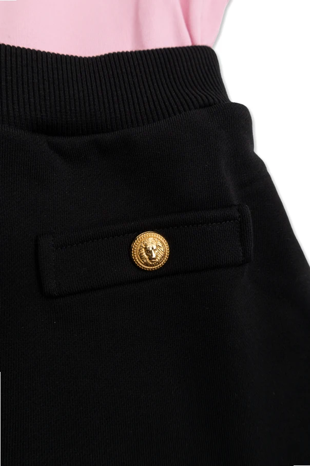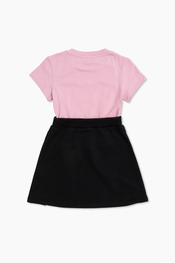 Das Kleid mit dekorativen Taschen der Marke BALMAIN PARIS ist ein Synonym für Raffinesse in der Kindermode. Der gerade Schnitt kombiniert ein körpernahes Oberteil, das an ein klassisches T-Shirt erinnert, mit einem ausgestellten Rock in A-Linie und schafft so eine harmonische Silhouette. Die glatte, zweifarbige Komposition – rosa Oberteil und schwarzer Rock – bezaubert durch ihre Subtilität, während der weiche, Baumwollstrick außergewöhnlichen Tragekomfort garantiert.