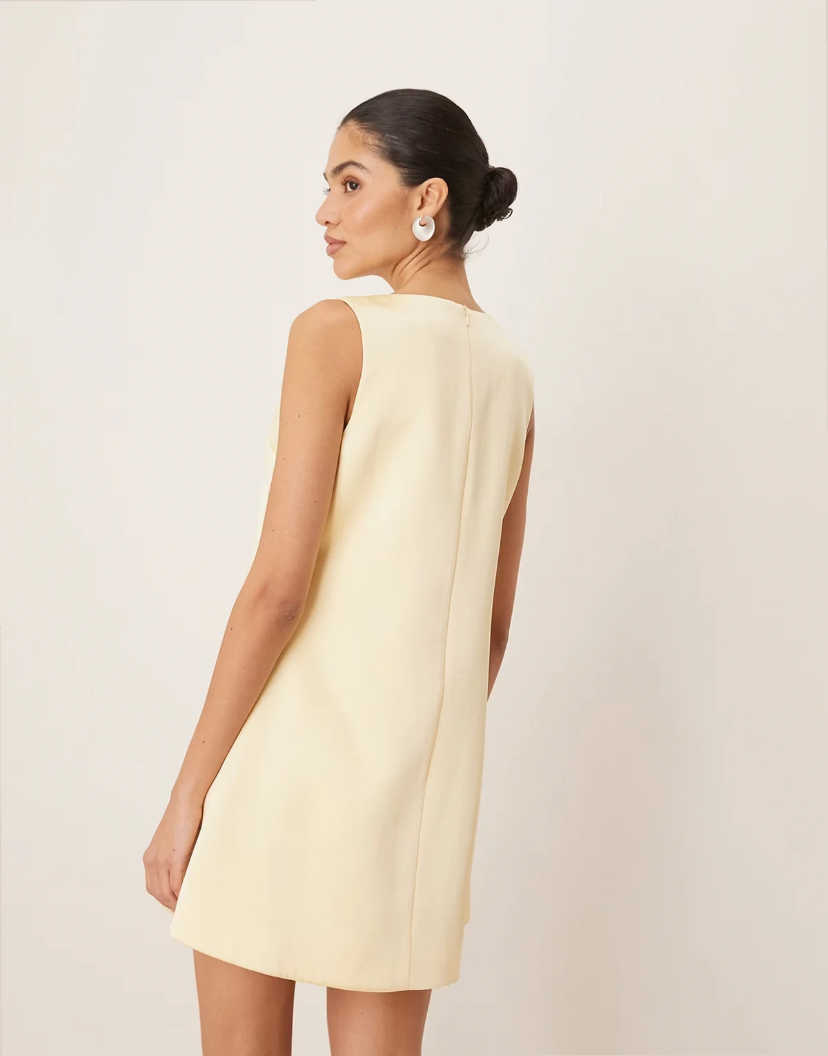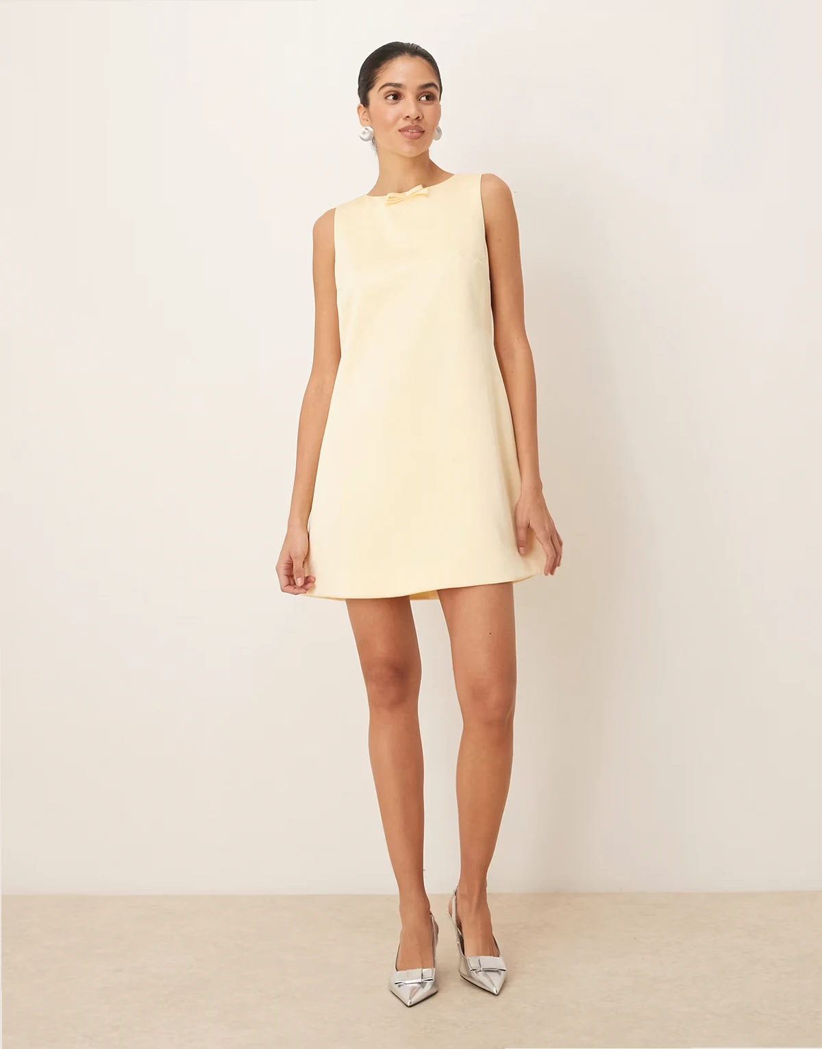 – Mini-Etuikleid aus Satin in Zitronengelb