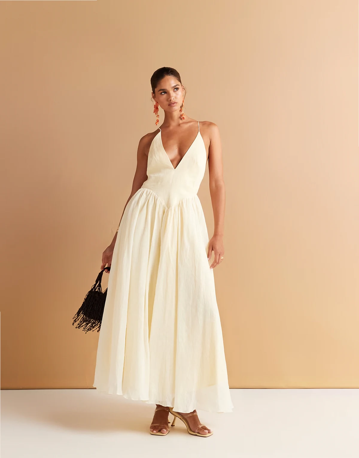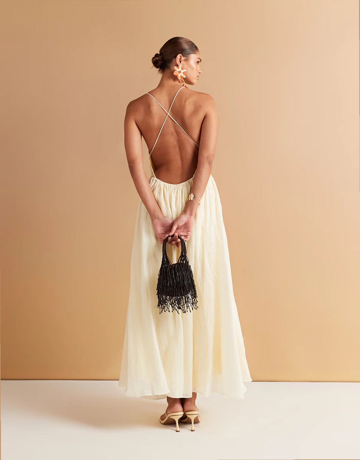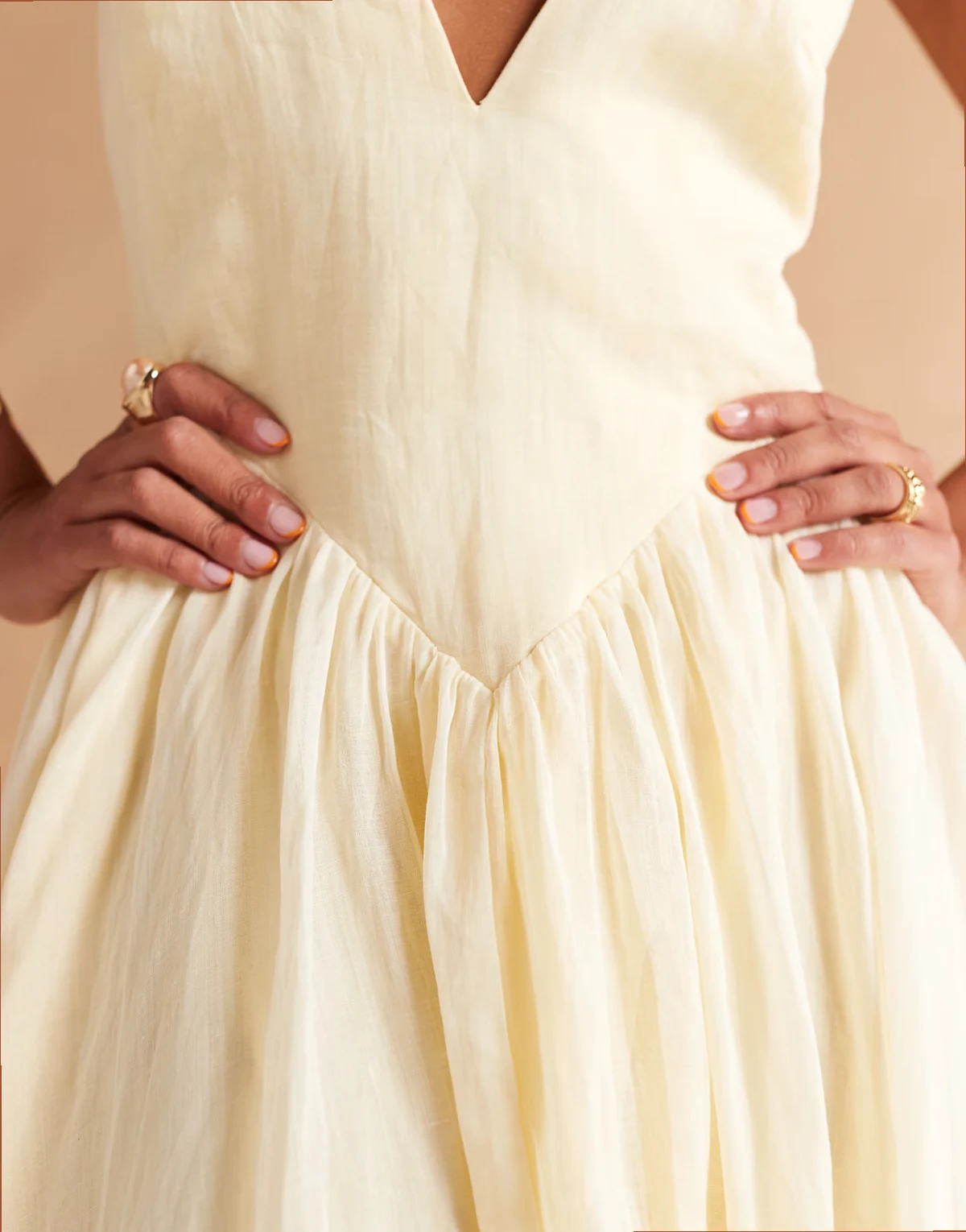 – Arletha – Neckholder-Maxikleid in Kanariengelb