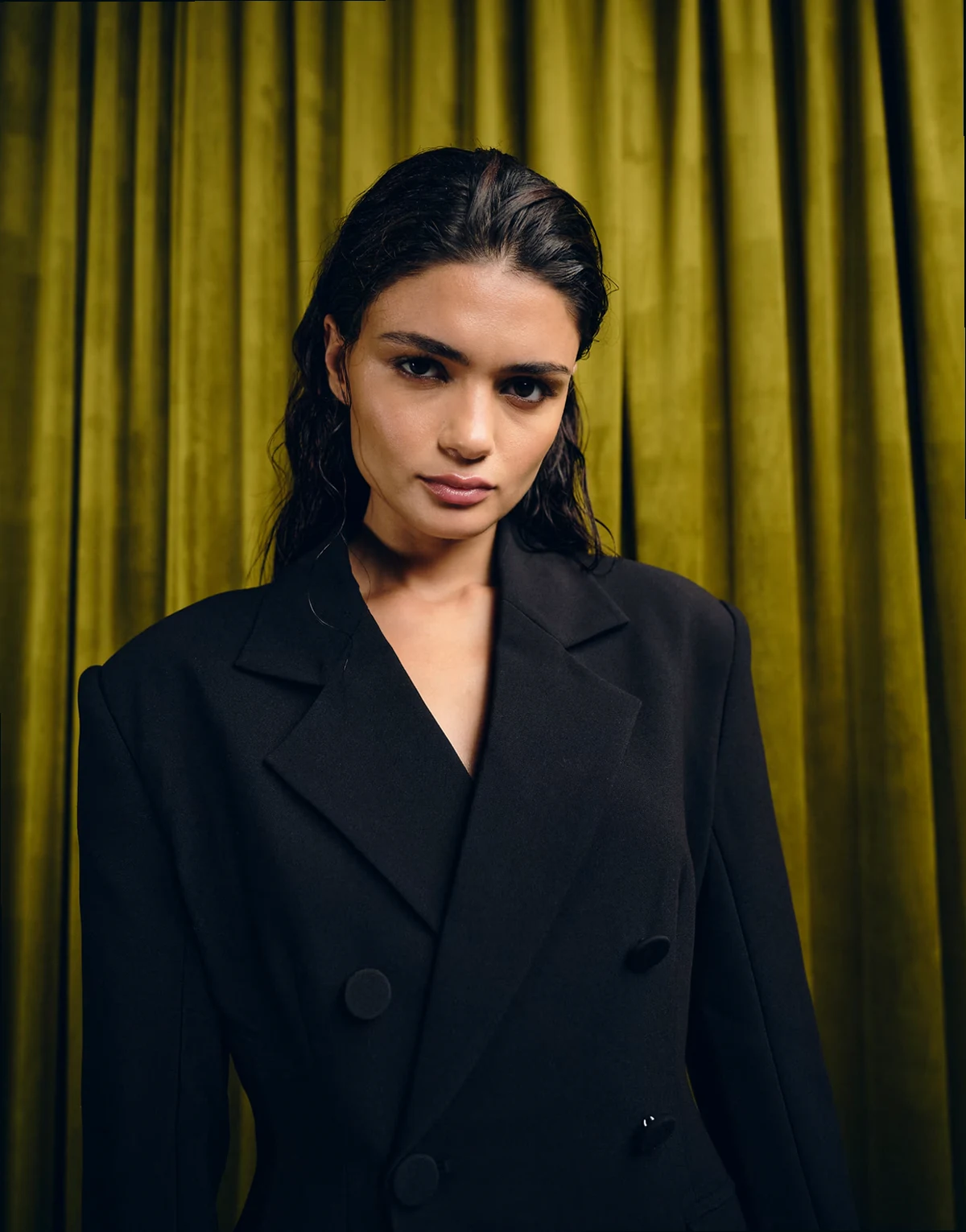 Futter: 95% Polyester, 5% Elastan, Hauptmaterial: 65% Polyester, 30% Viskose, 5% Elastan.