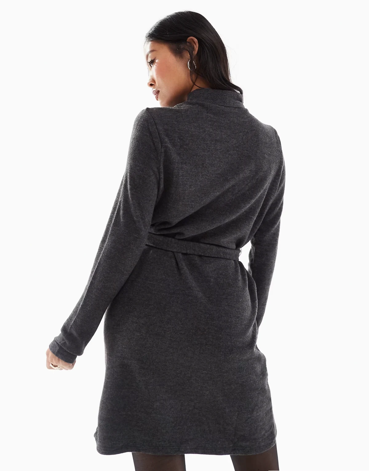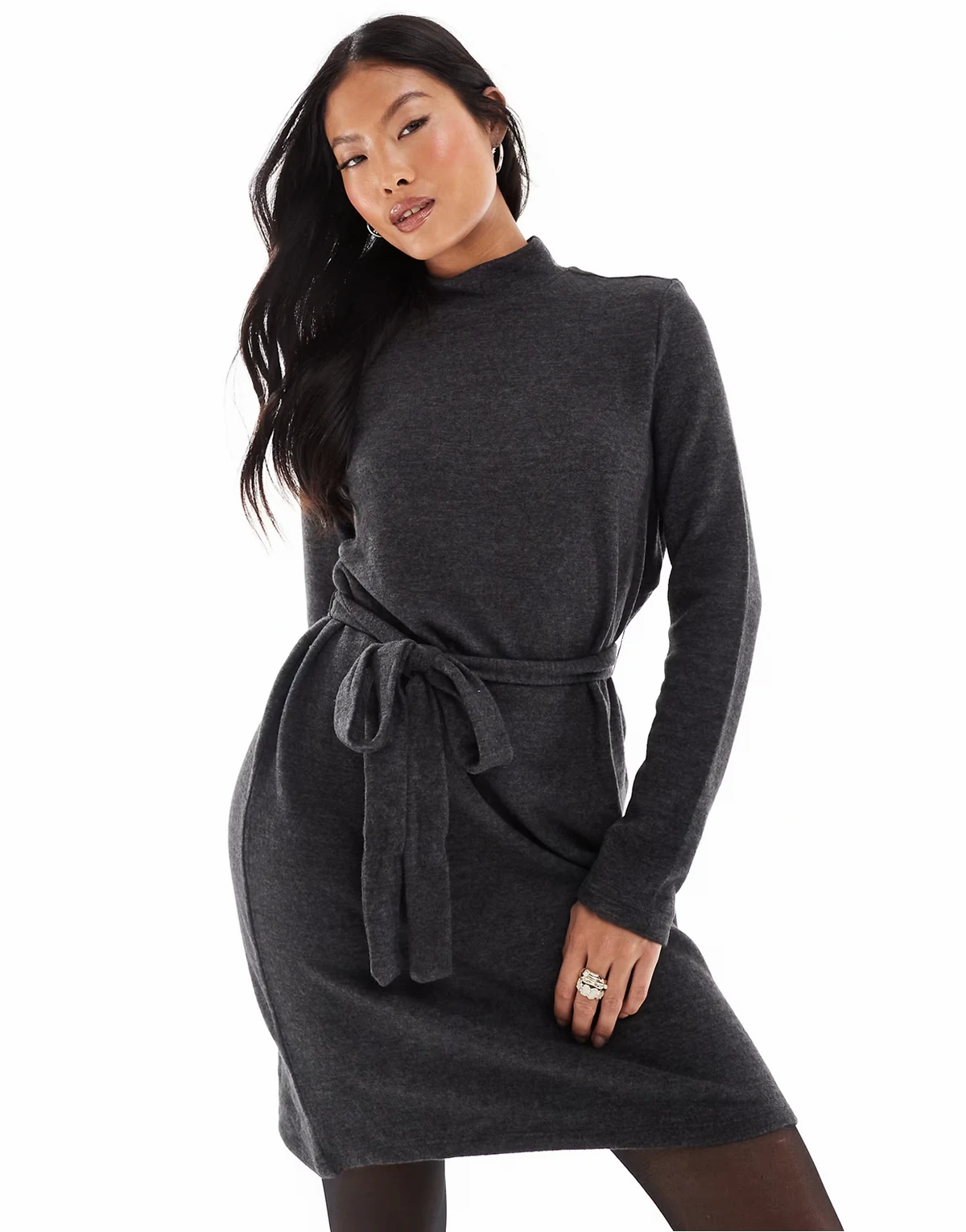 – Hochgeschlossenes Strick-Minikleid in Schwarz mit Bindebund