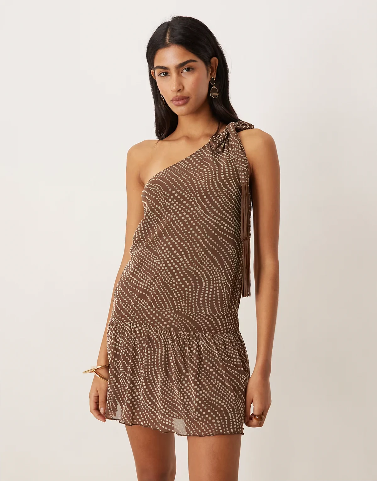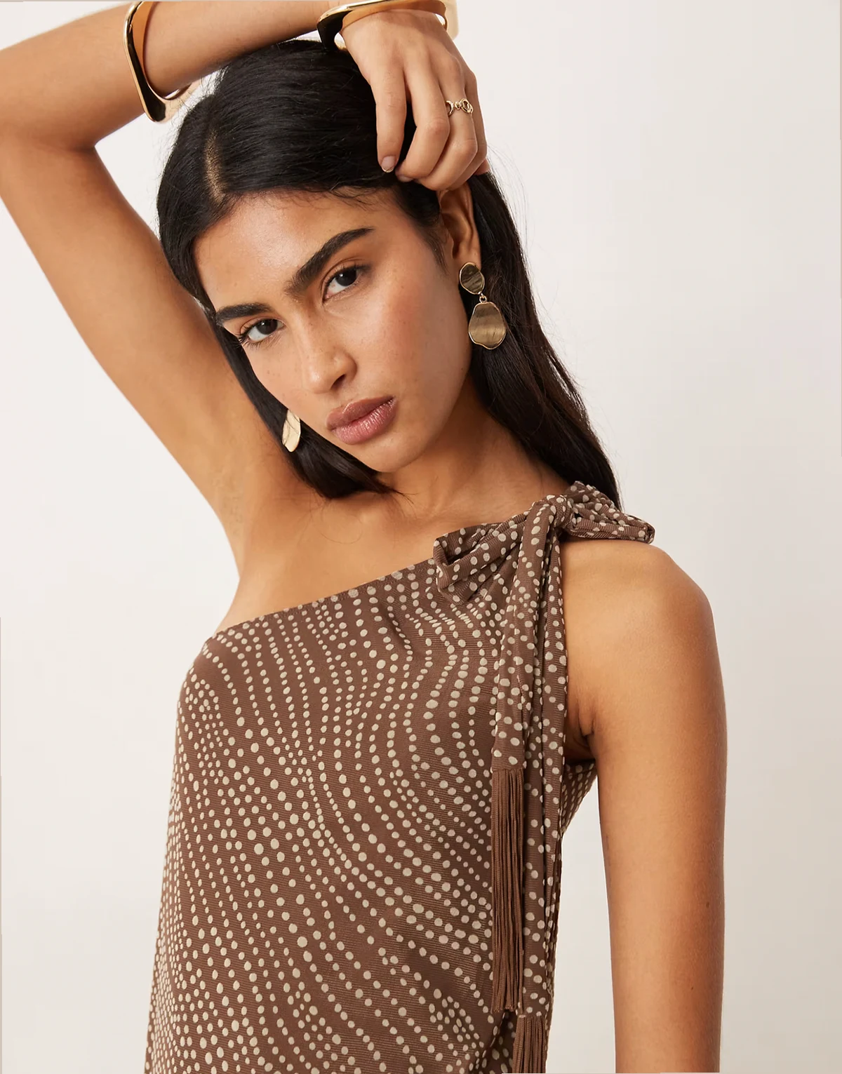 – Beflocktes Kleid in Braun mit abstrakten Polka Dots