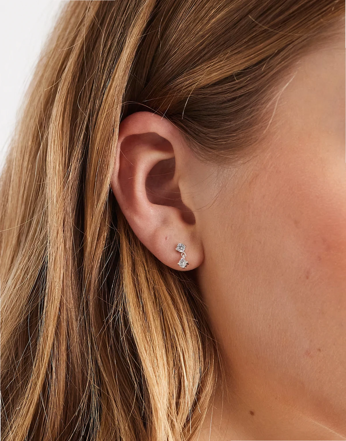 – Ohrringe aus Sterlingsilber mit eckigem Anhänger und gefasstem Schmuckstein