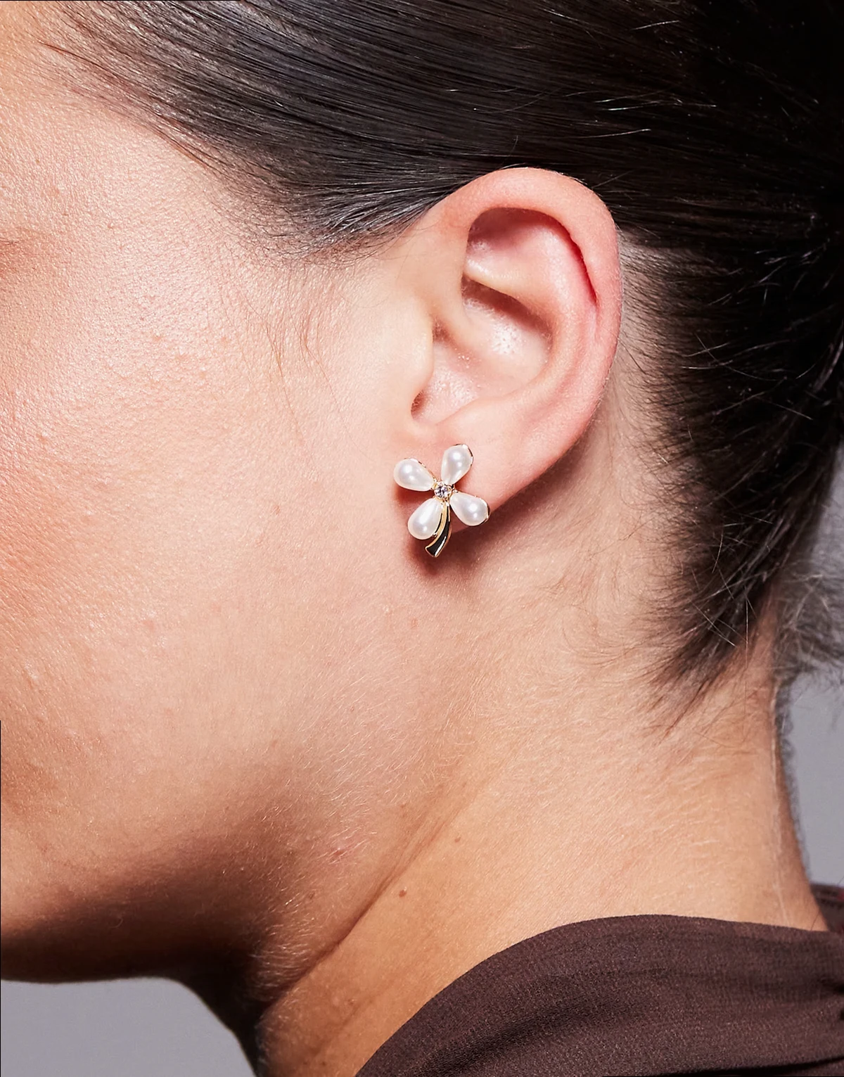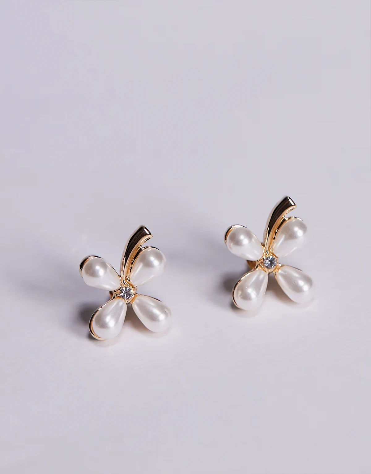 – Ohrstecker in Gold-Optik mit Blumen-Design und Perlenbesatz