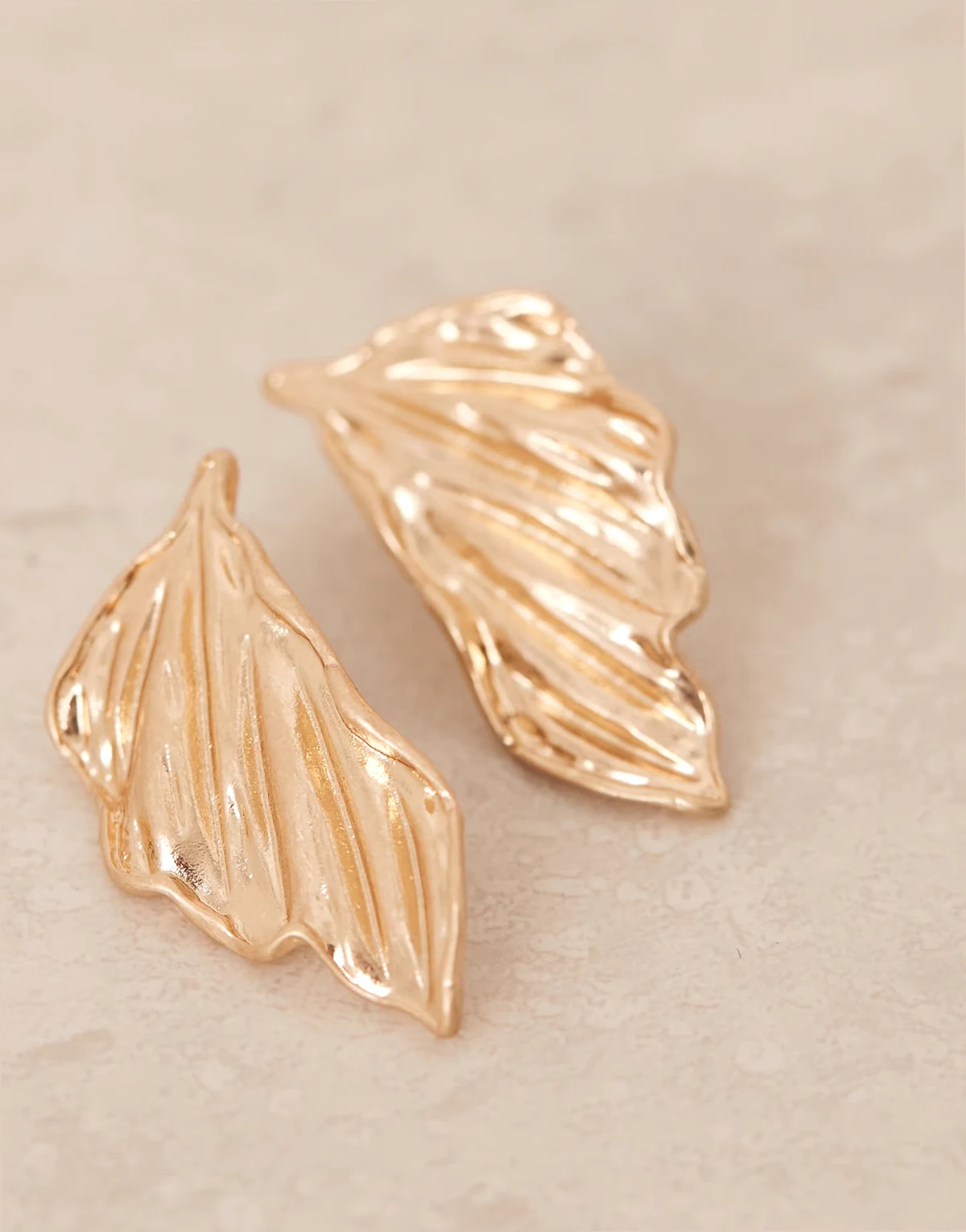 – Blattförmige Statement-Ohrstecker in Goldoptik