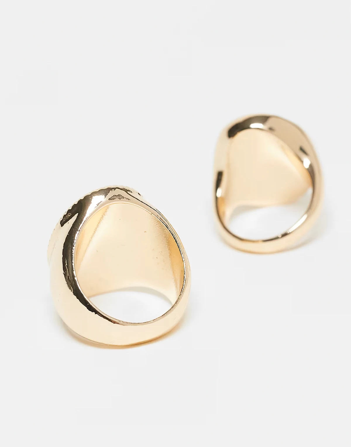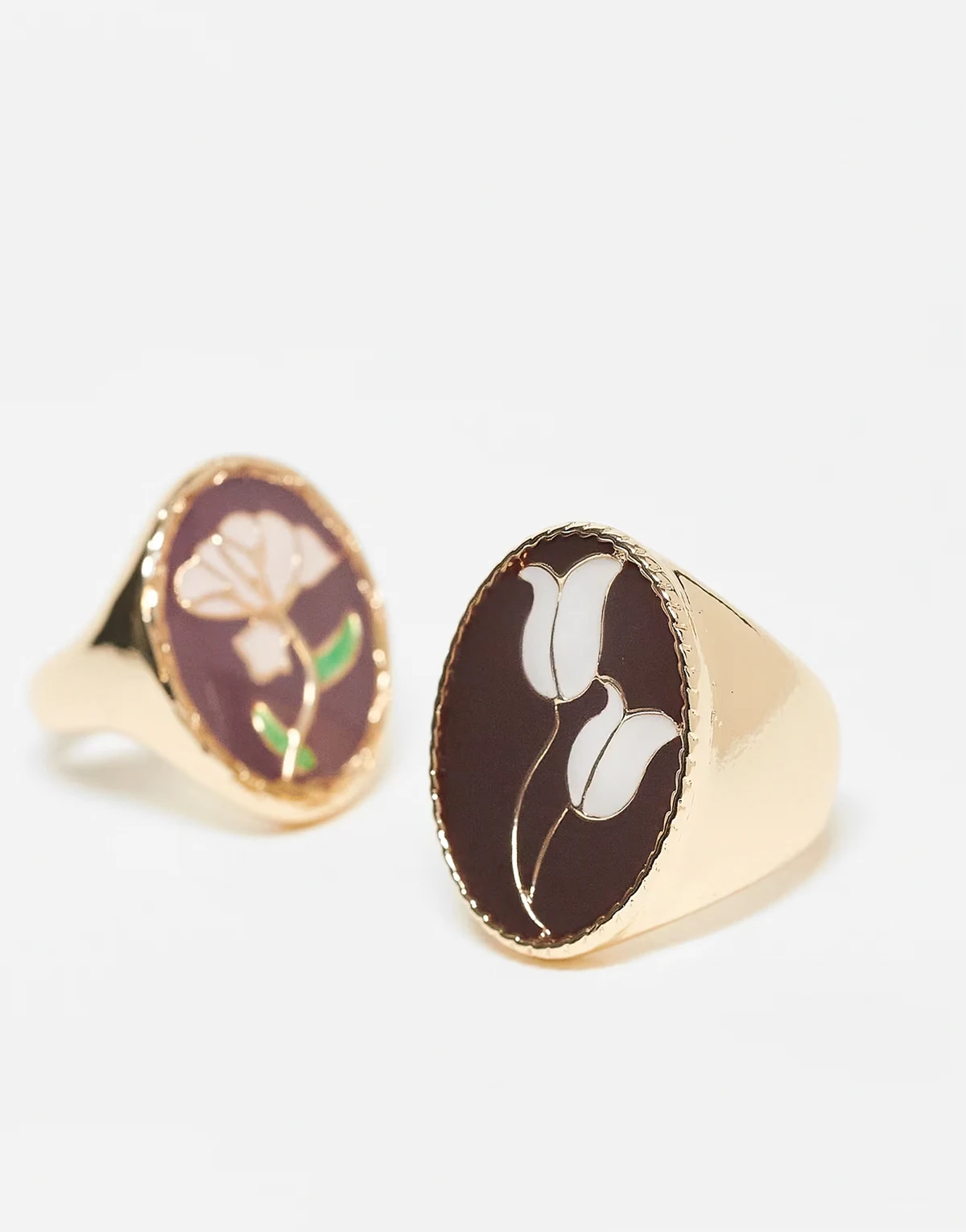 – 2er-Pack goldfarbene Ringe mit Emaille und Blumendetail