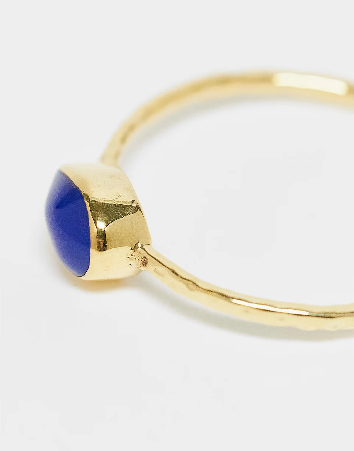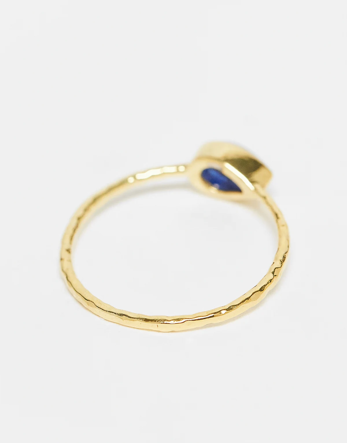 – Vergoldeter Ring in gehämmerter Optik mit blauem Schmuckstein