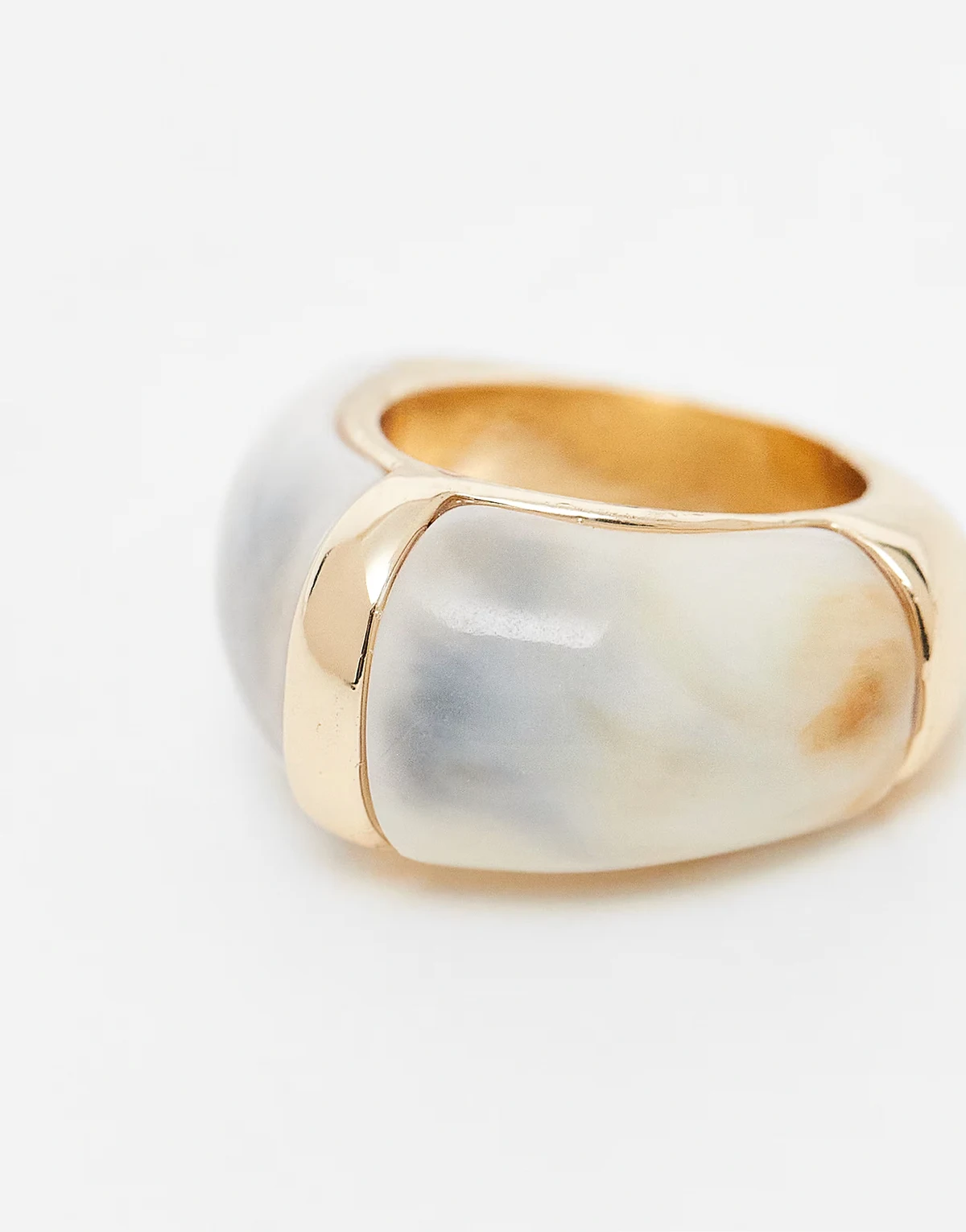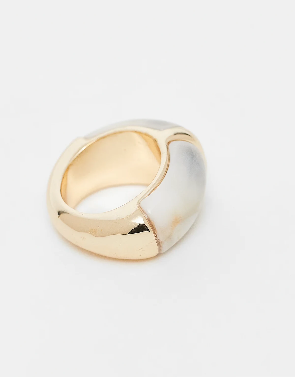 – Breiter Ring in Goldoptik mit cremefarbenem Schmuckstein-Inlay