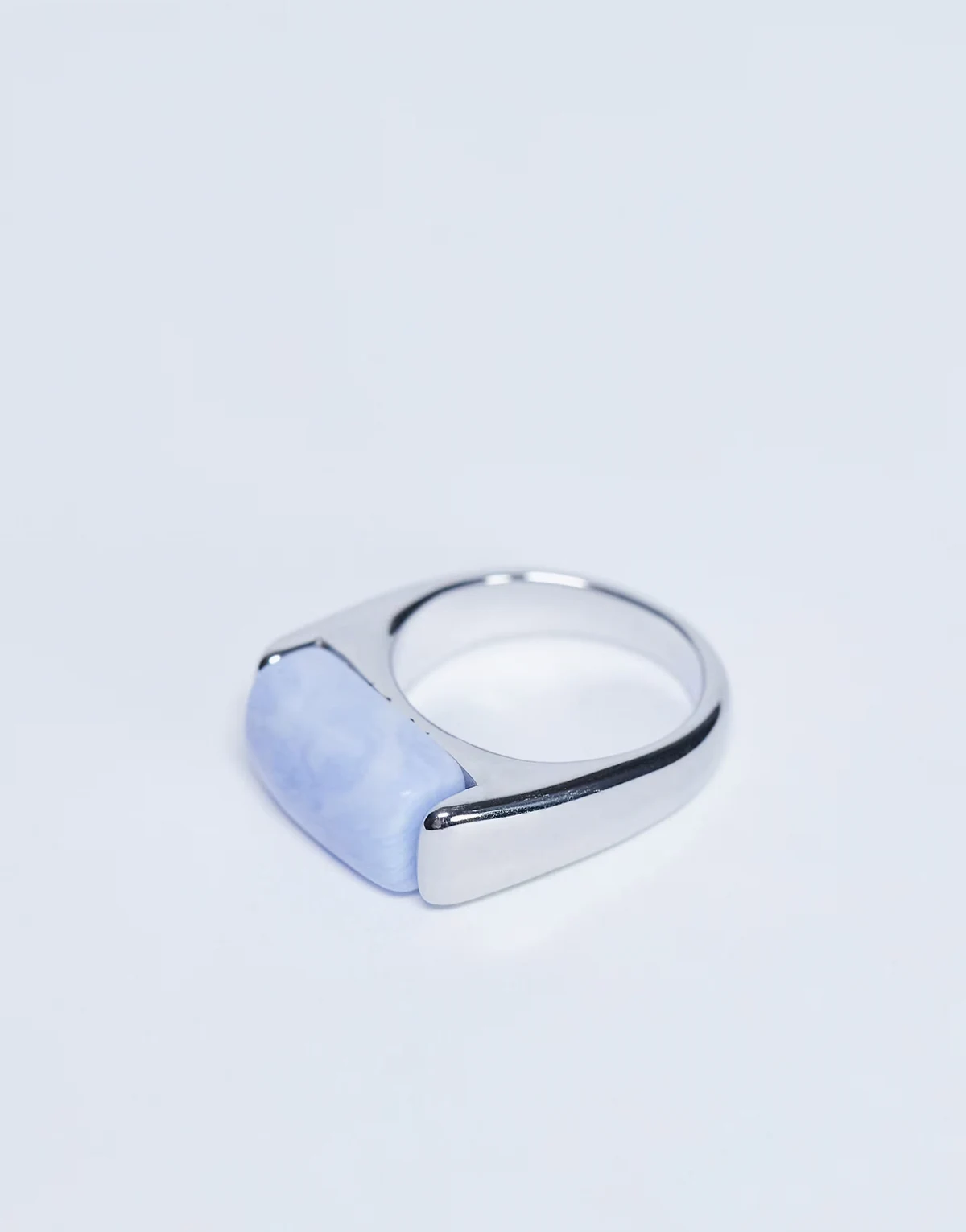 – Raquel – Silberfarbener Ring aus Edelstahl mit blauem Schmuckstein