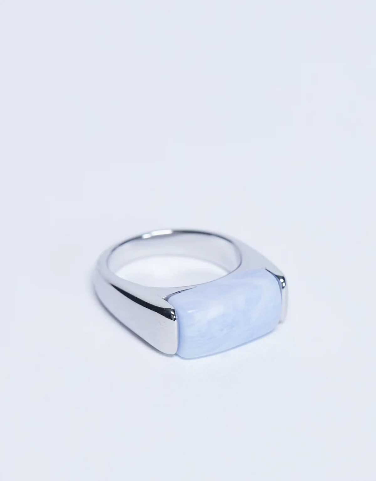 Der Raquel Ring ist aus einem korrosionsbeständigen Metall mit silberfarbenem Finish gefertigt. Das Modell mit schmalem Band verfügt über einen Schmuckstein.