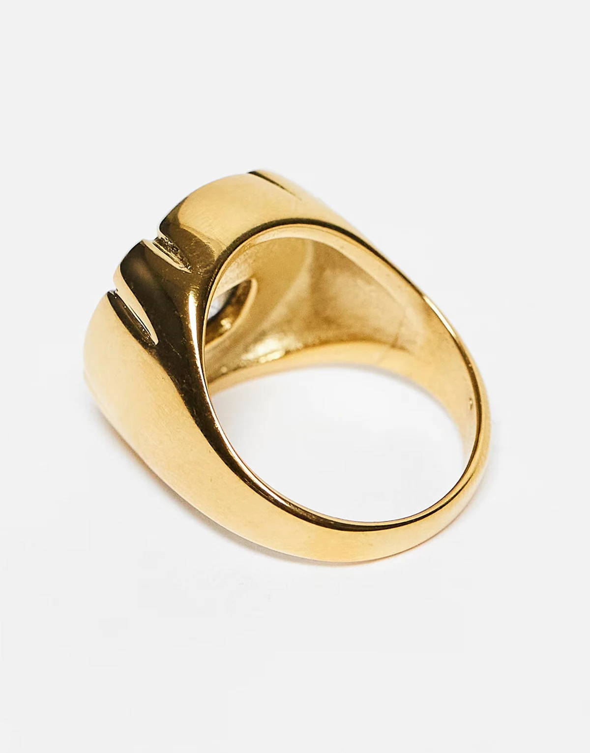 – Exclusive – Edelstahlring in Goldoptik mit rosafarbenem Stein mit Kissenschliff