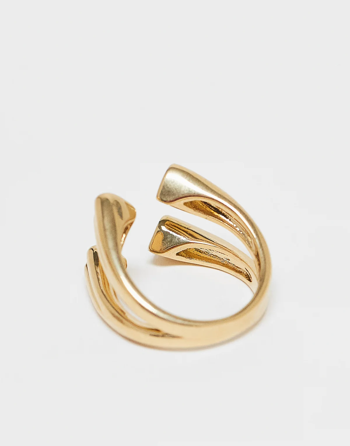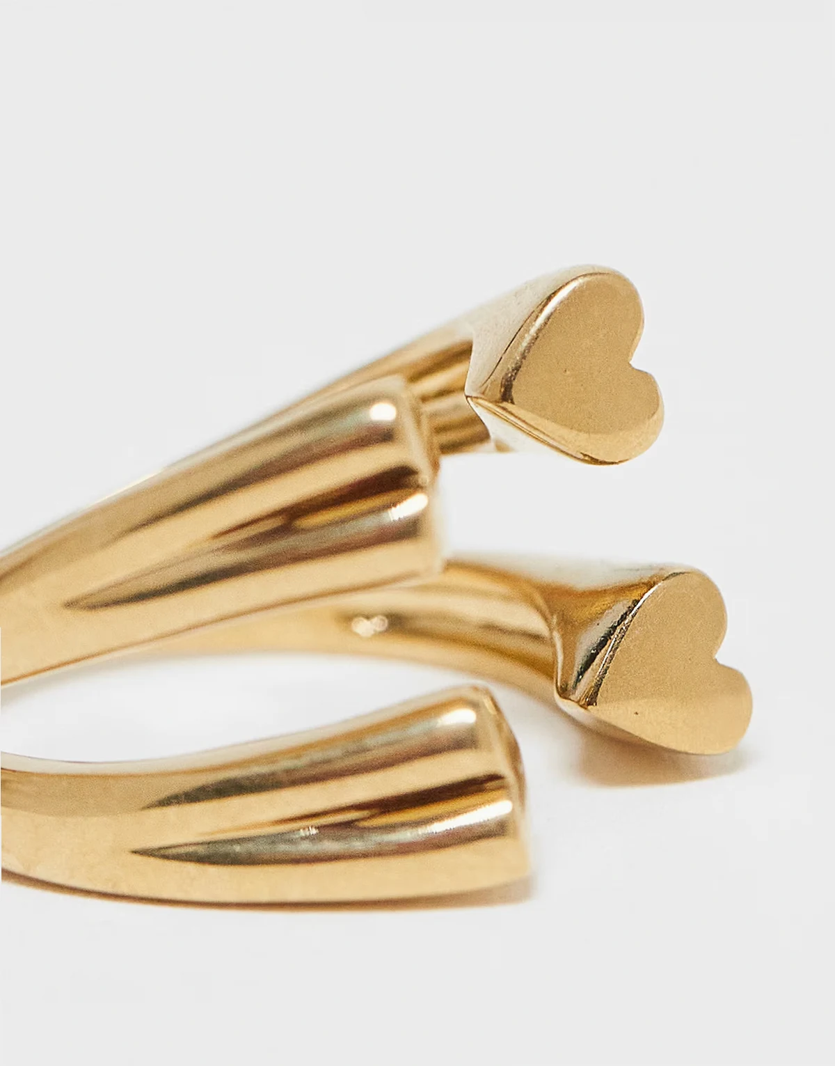 – Doppellagiger, offener Ring mit Herzdetails in Gold