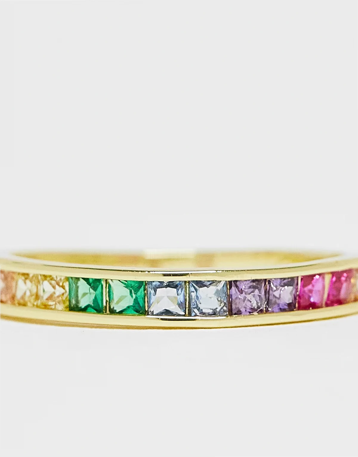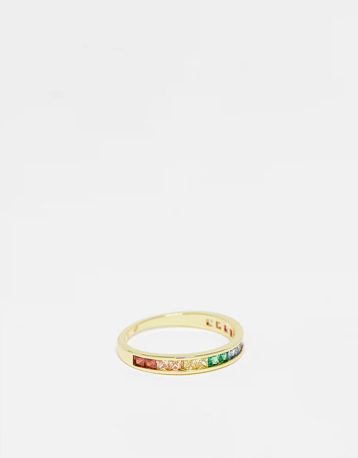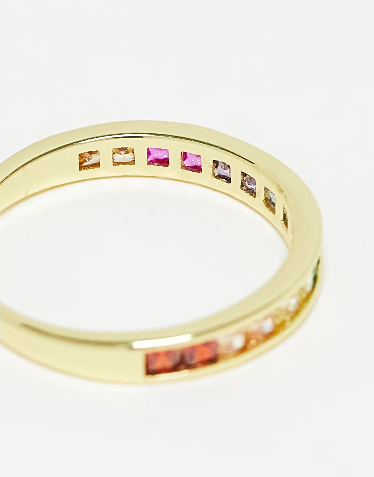 – Stapelring mit 18-Karat Vergoldung und regenbogenfarbenen Ziersteinen