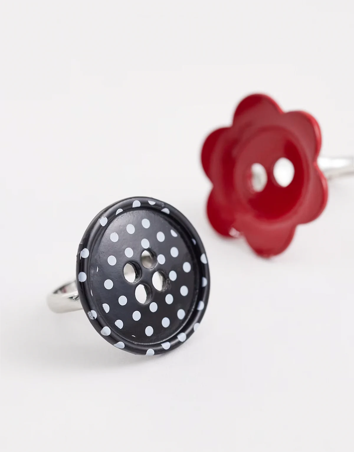 – 2er-Pack Knopf-Ringe in Rot und mit Punktemuster