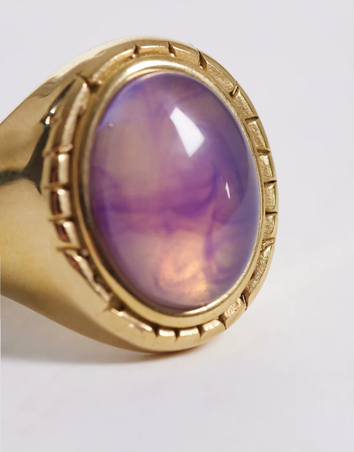– Ring aus Edelstahl in Goldoptik mit Schmuckstein