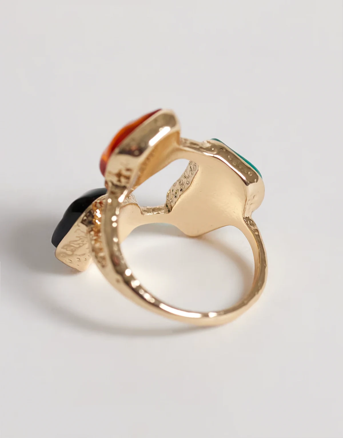 – Goldfarbener Wickelring mit eingefassten bernsteinfarbenen Steinen