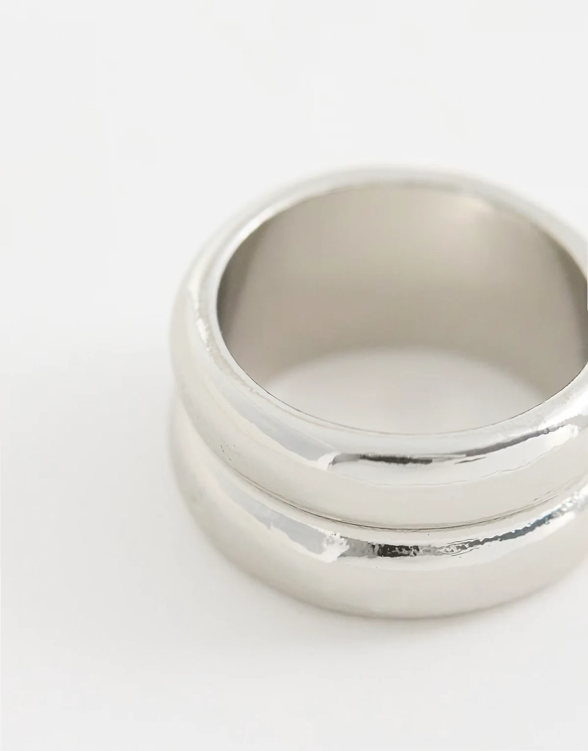 – Breiter Ring in Silberoptik mit Doppelband-Design