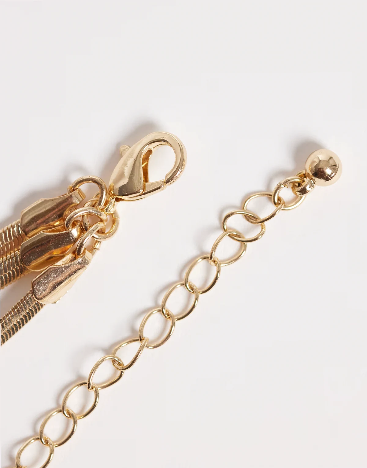 – Mehrreihige, flache Schlangenketten in Goldoptik