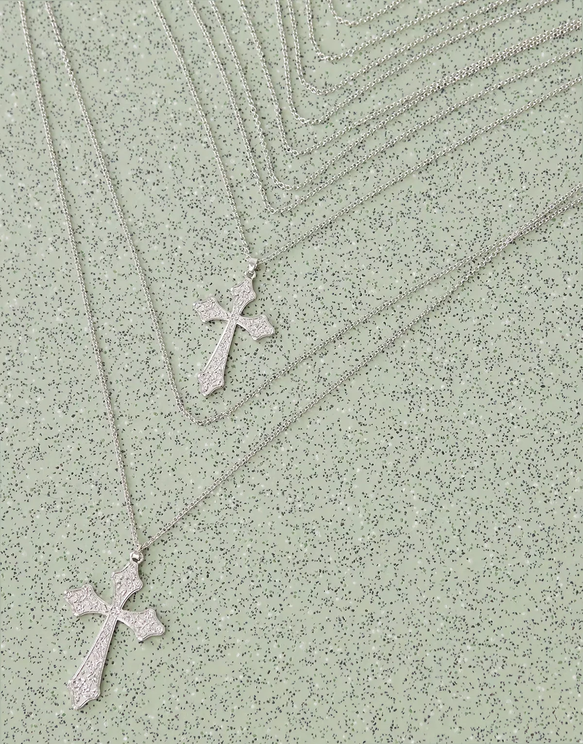 – Mehrreihige Halskette in Silberoptik mit Kreuzanhängern