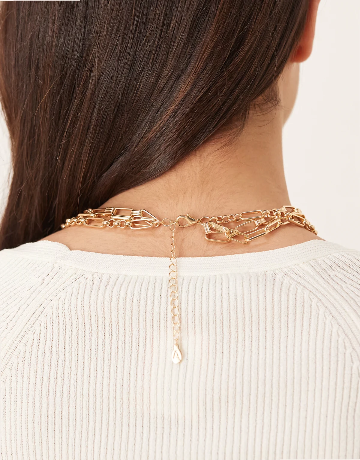– Mehrreihige Halskette mit 18 Karat Vergoldung und Lassodesign