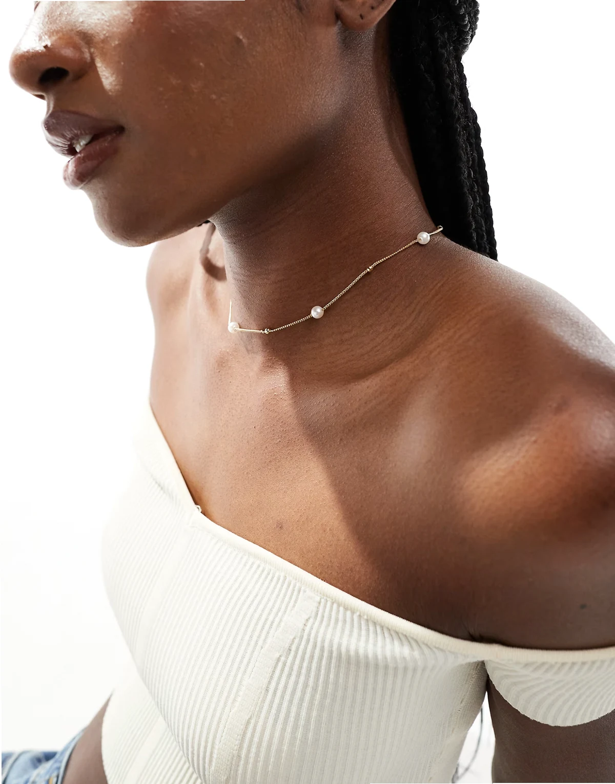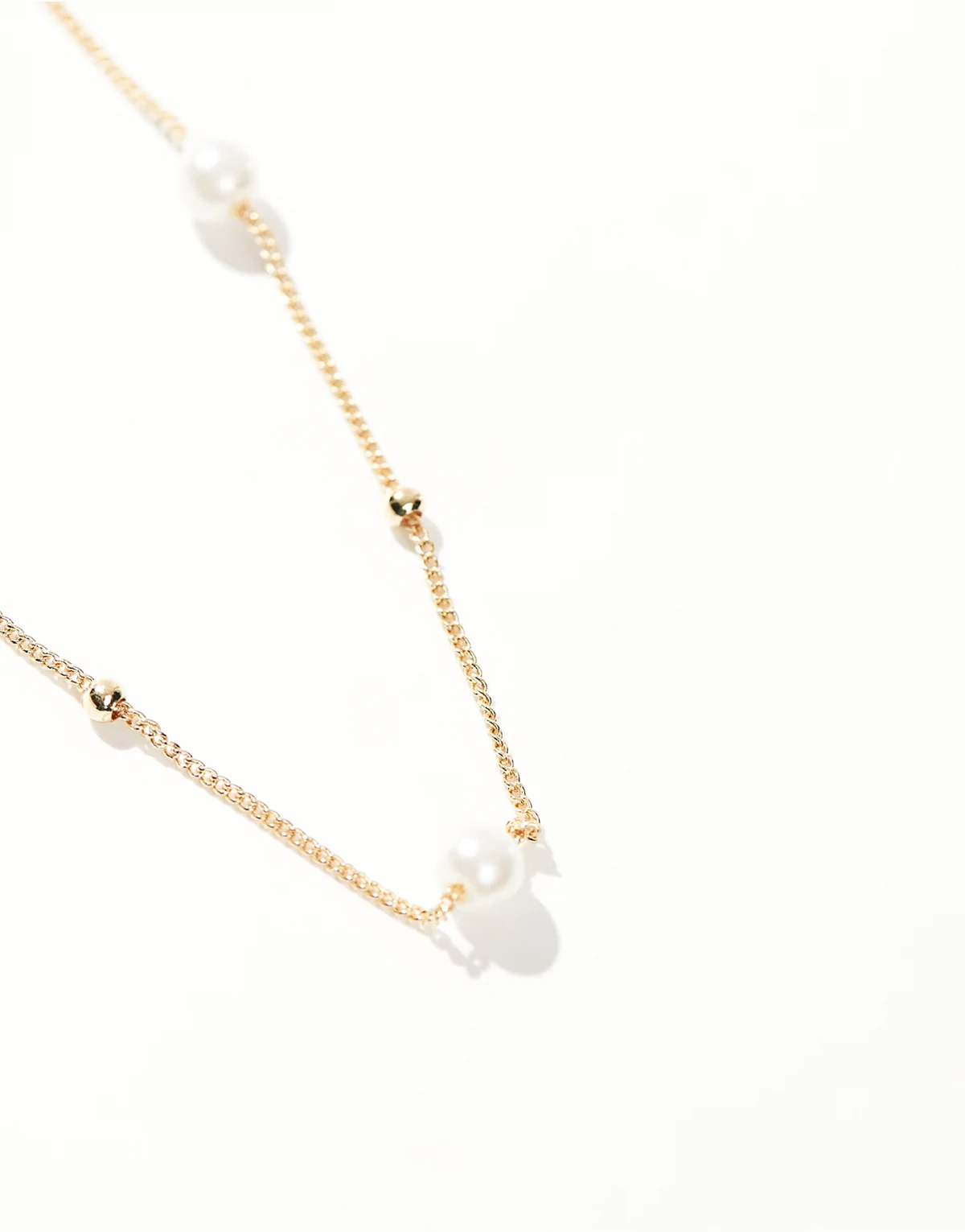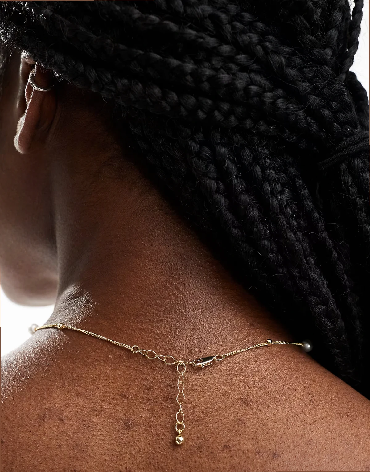 – Halskette mit Perlen und Kugeln in Goldoptik