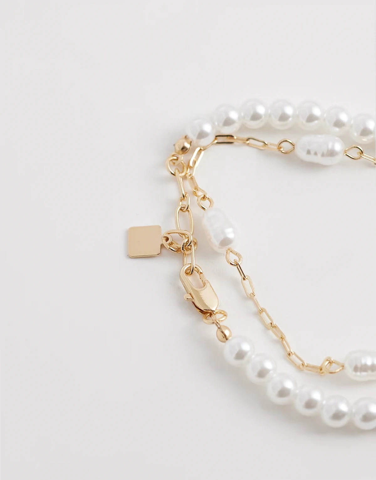 ASOS DESIGN Curve – 2er-Pack goldfarbene Armbänder mit Kunstperlen-Design