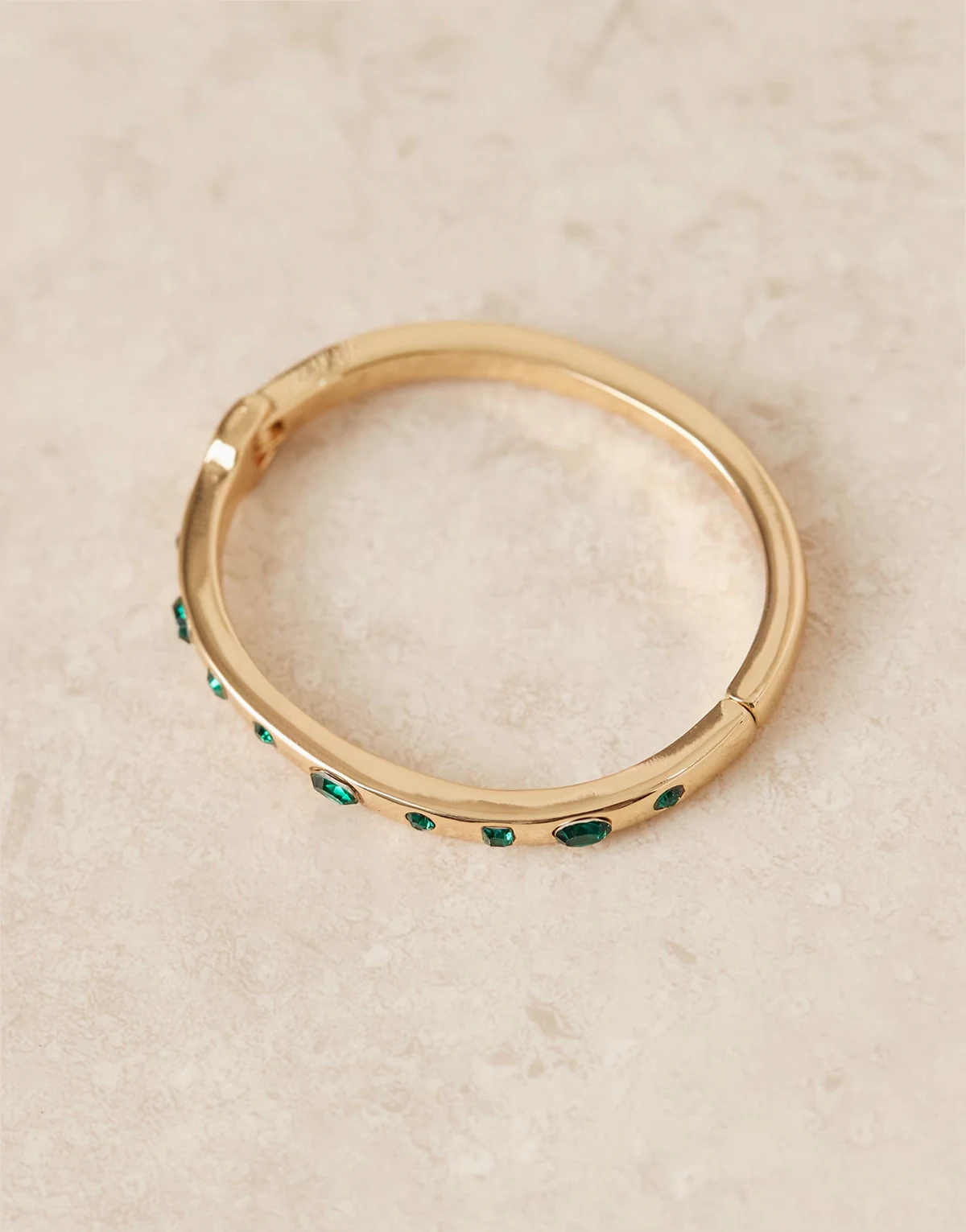 – Goldfarbener Armreif mit eingefassten grünen Steinen