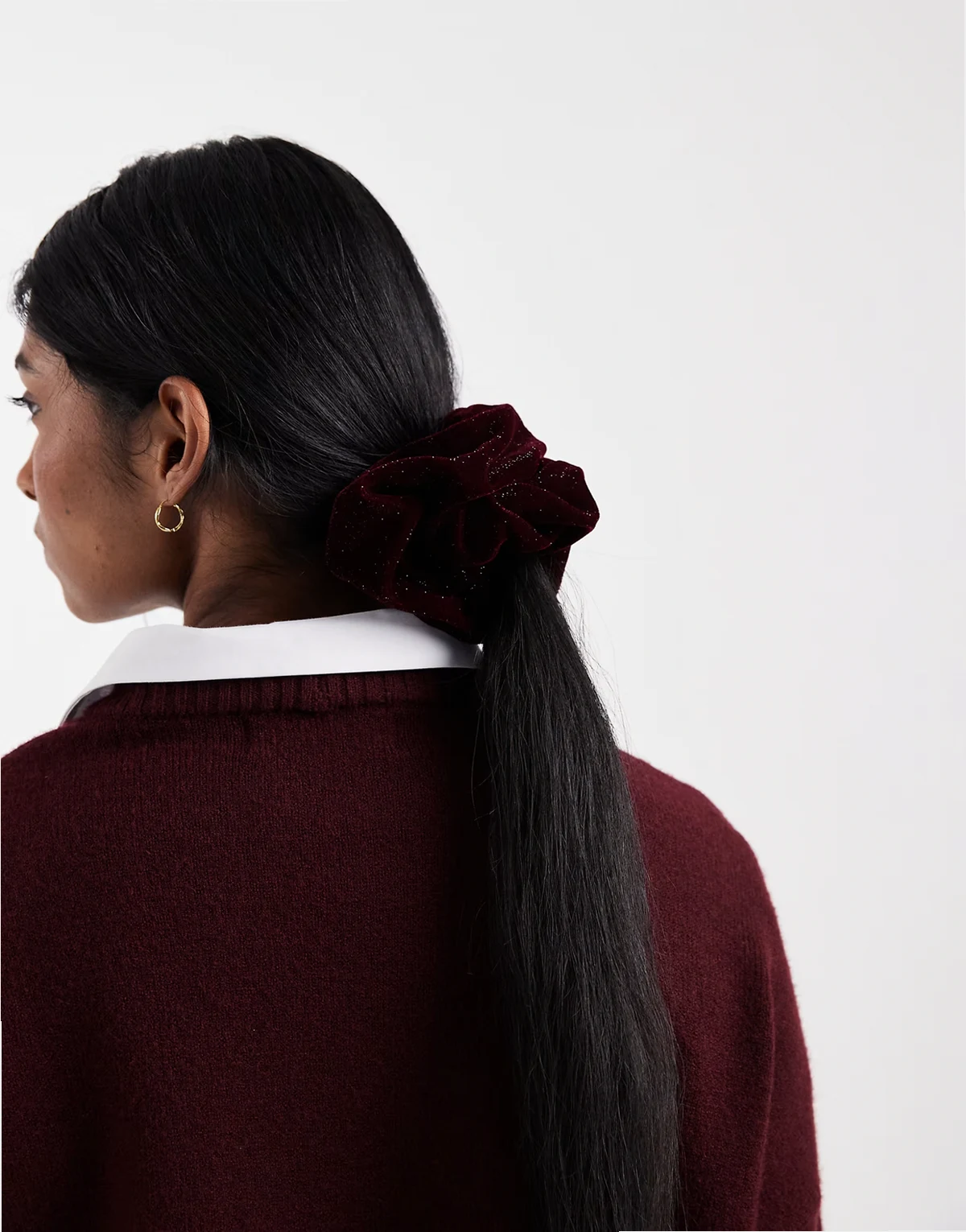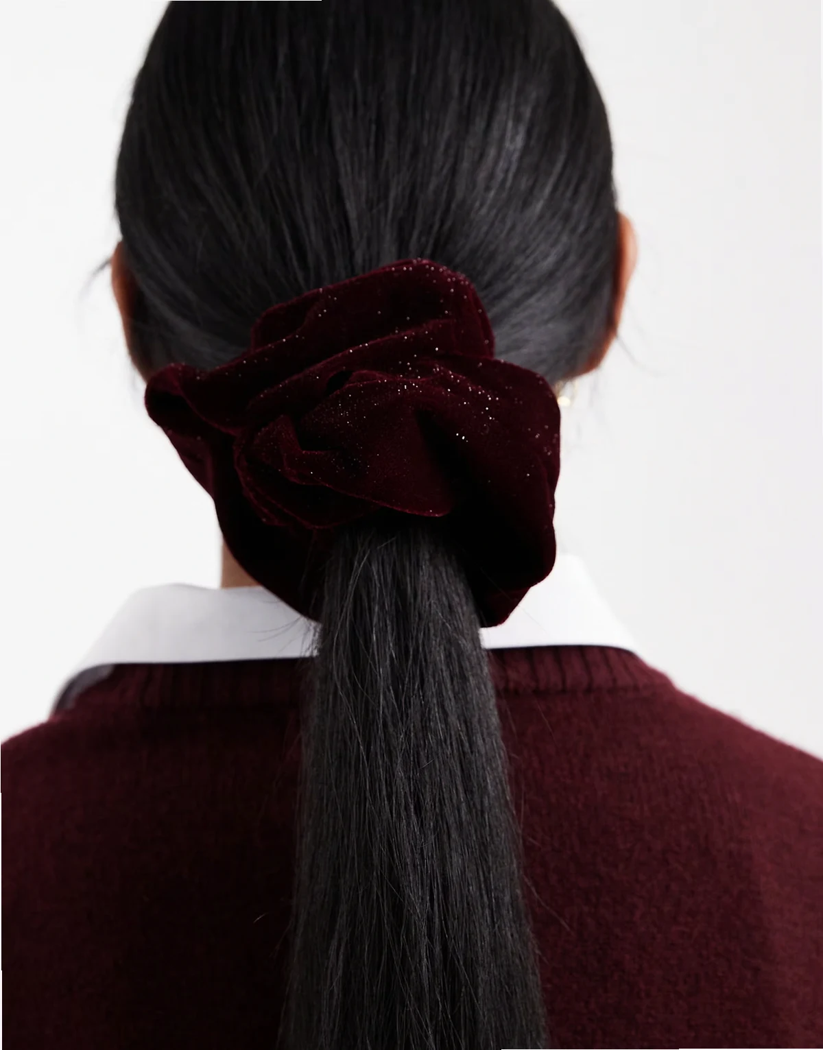 – Scrunchie aus Samt in glitzerndem Burgunderrot