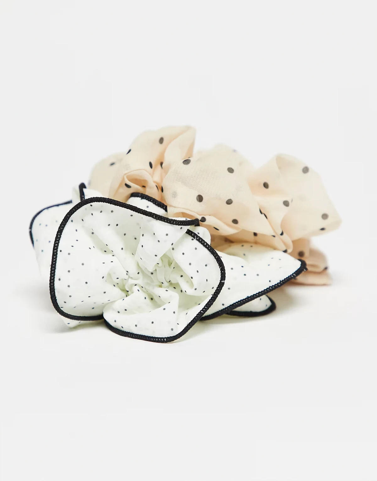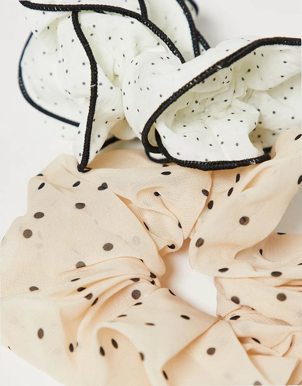 – 2er-Pack Scrunchie-Haargummis in Beige und Weiß mit Polka Dots
