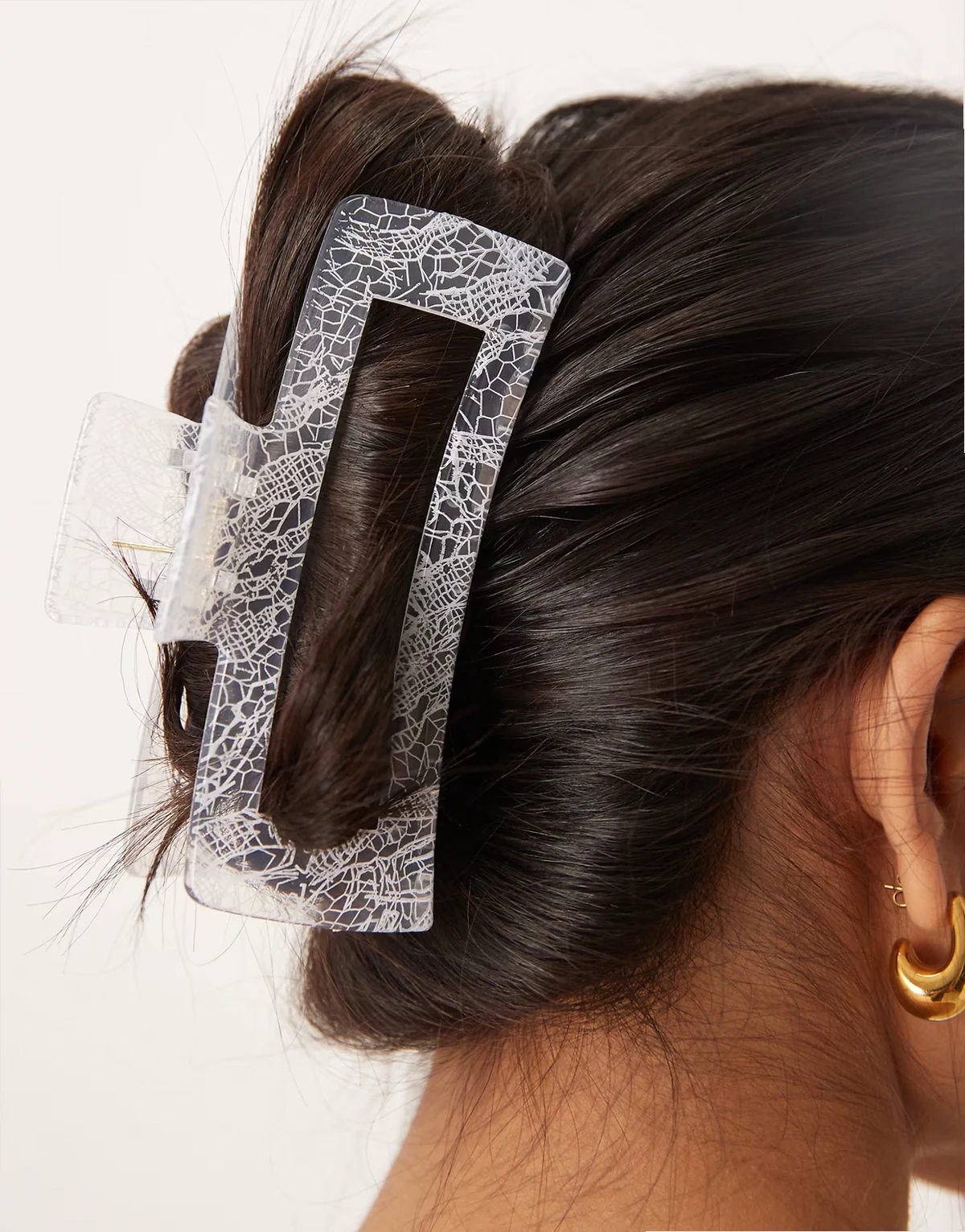 – Mittelgroße Haarklammer in Weiß mit Spitzenmuster