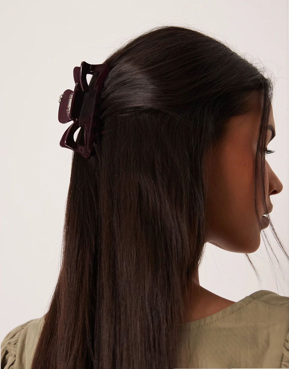 – Bow Pierced – Große Haarklammer in Burgunderrot mit Schleifen-Design