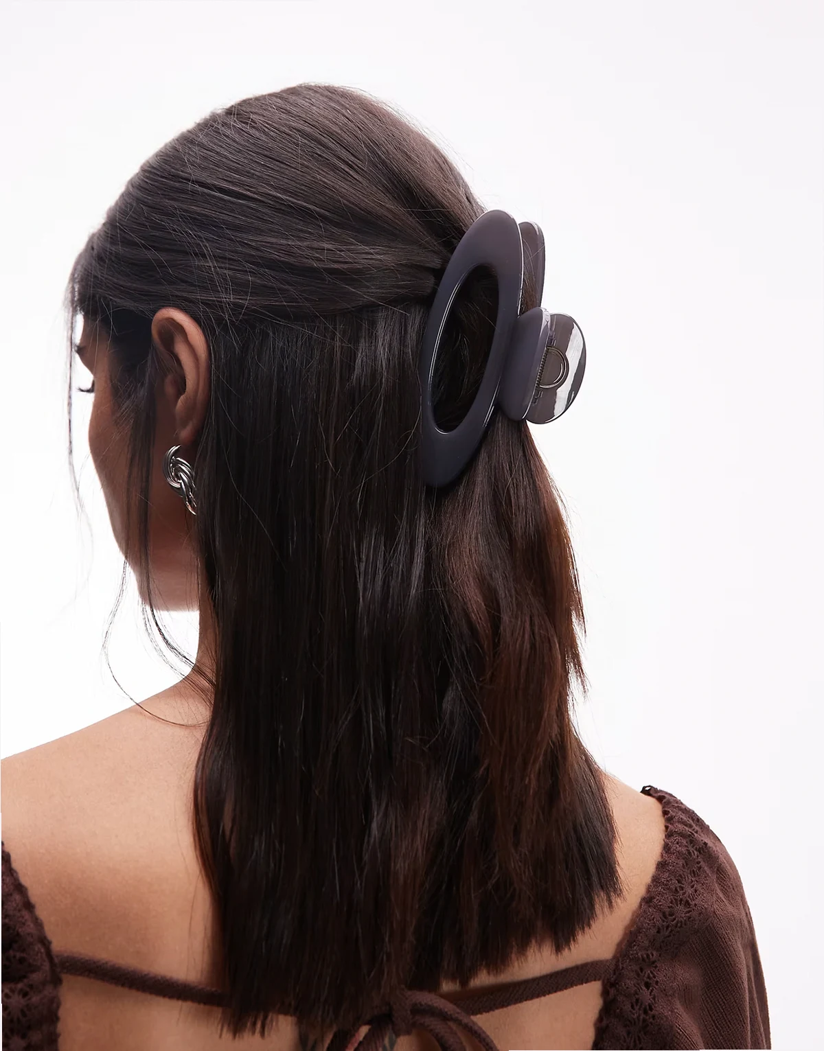 – Große, ovale Haarklammer in Dunkelgrau