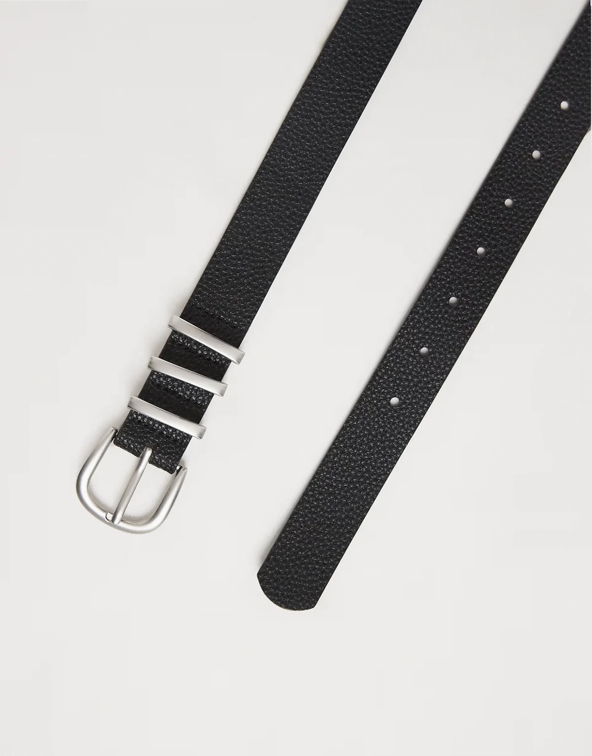 Pieces Curve – Schwarzer Gürtel mit Silberschnalle